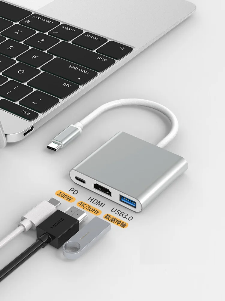 Cable adaptador USB 3 en 1 chapado en oro tipo C macho a tipo C/compatible con HDMI/compatible