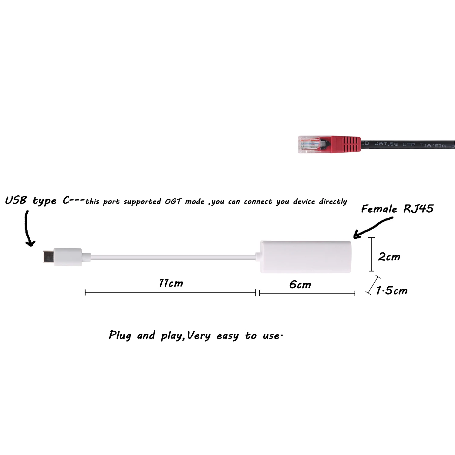 Tipo c etherlan Adaptador 10m Ethernet 100m Longitud: 22cm