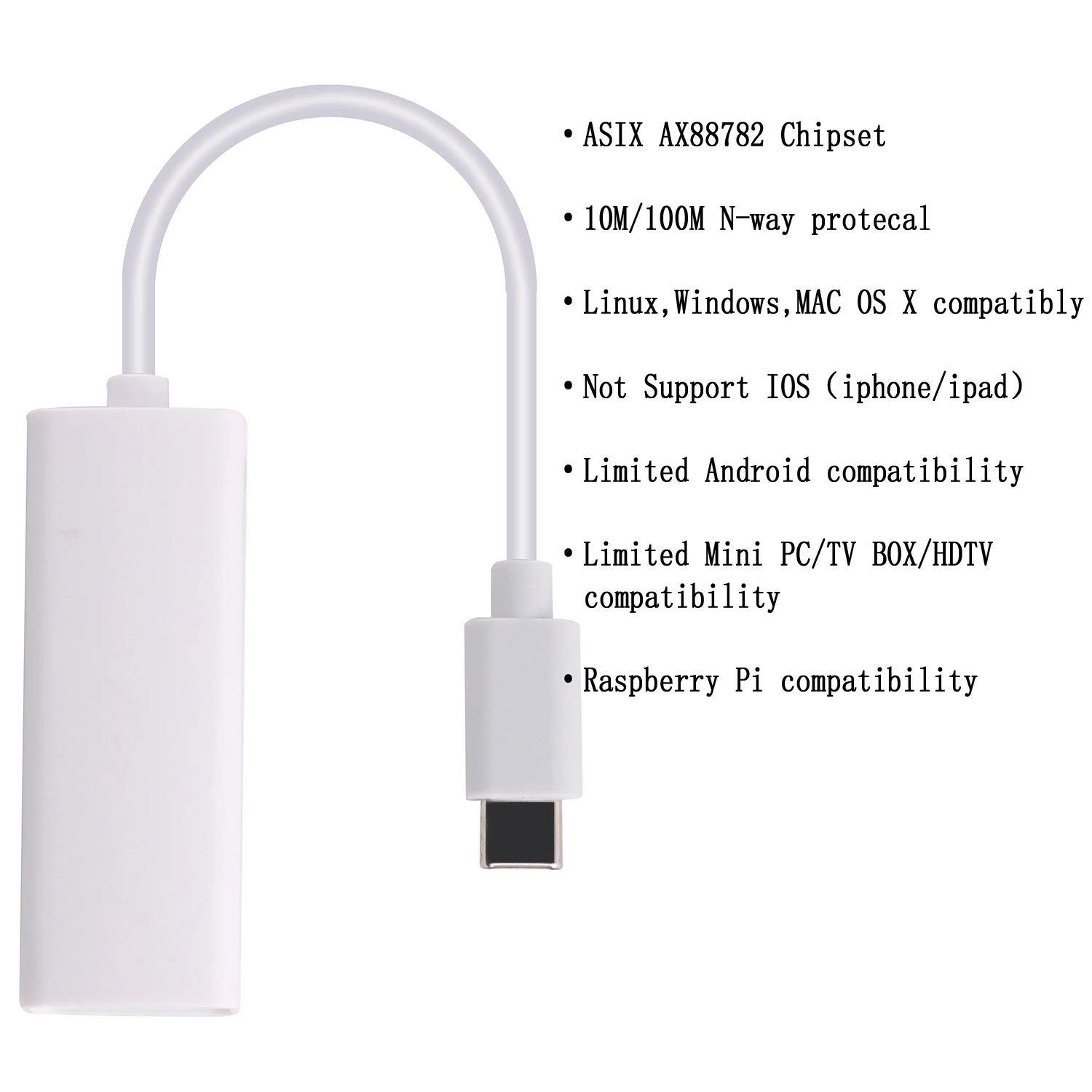 Comprar Tipo C USB a RJ45 Lan adaptador de Ethernet de 100Mbps Asix AX88772B AX88772 Lan convertidor 10M 100M