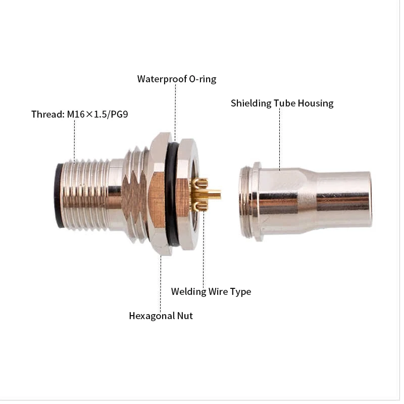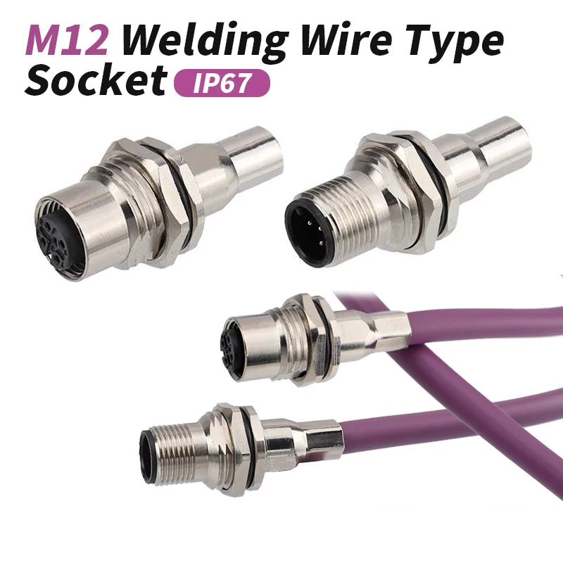 Comprar Tipo de cable de soldadura M12 con tubo blindado 4, 5, 6, placa conectora impermeable de 8 pines instalada con asientos de brida macho y hembra