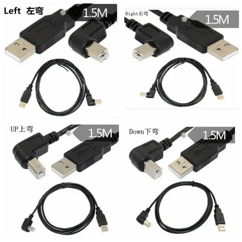 Tipo A macho a tipo B macho 90 grados arriba y abajo y cable escáner de impresora USB 2.0 en ángulo izquierdo y derecho 1,5 m 5 pies