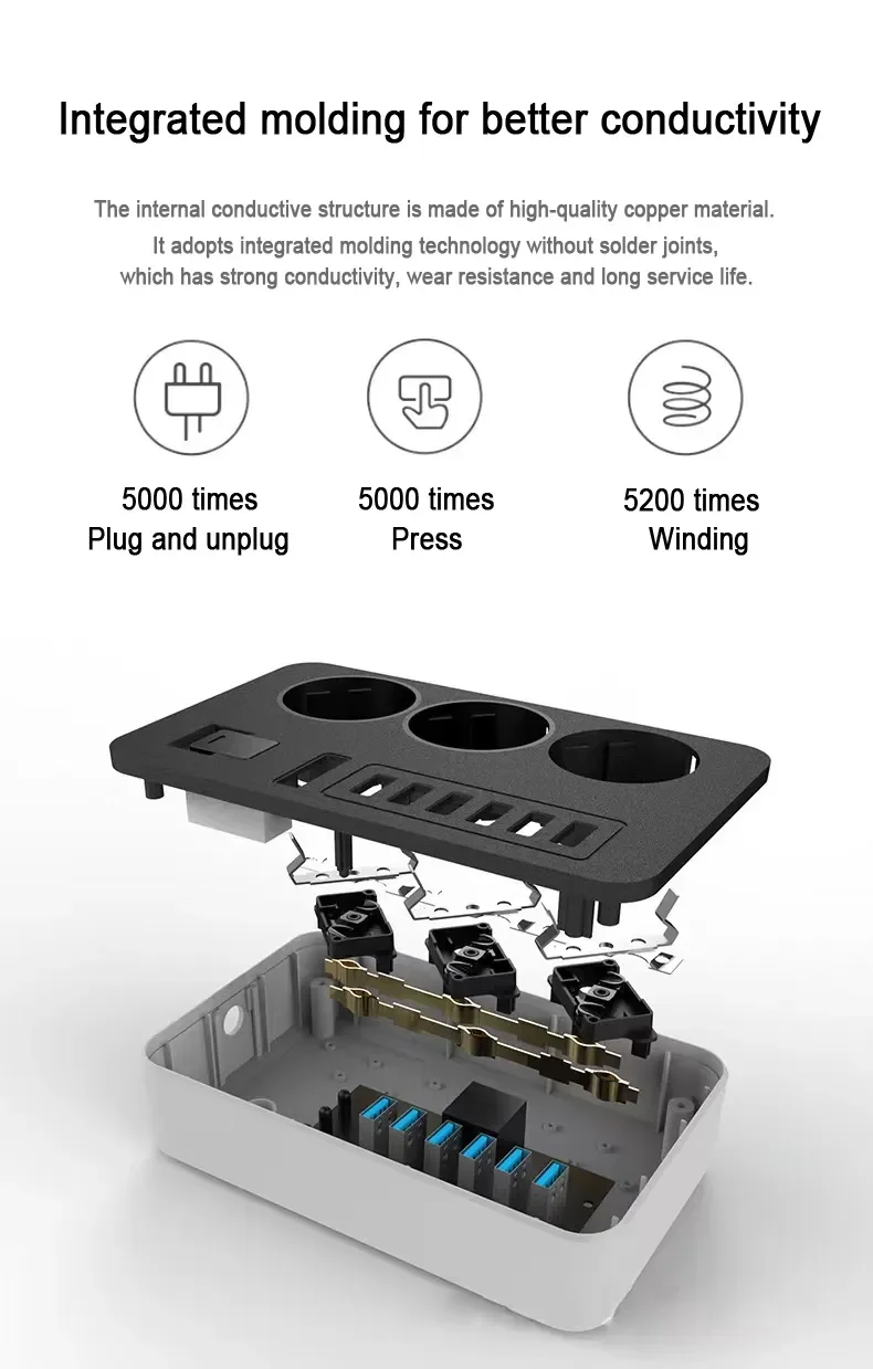 Se puede utilizar en los enchufes eléctricos convencionales. El elástico es fuerte, con menos calor y alta seguridad. Podrás insertarlo y extraerlo miles de veces con un uso normal y no se soltará.