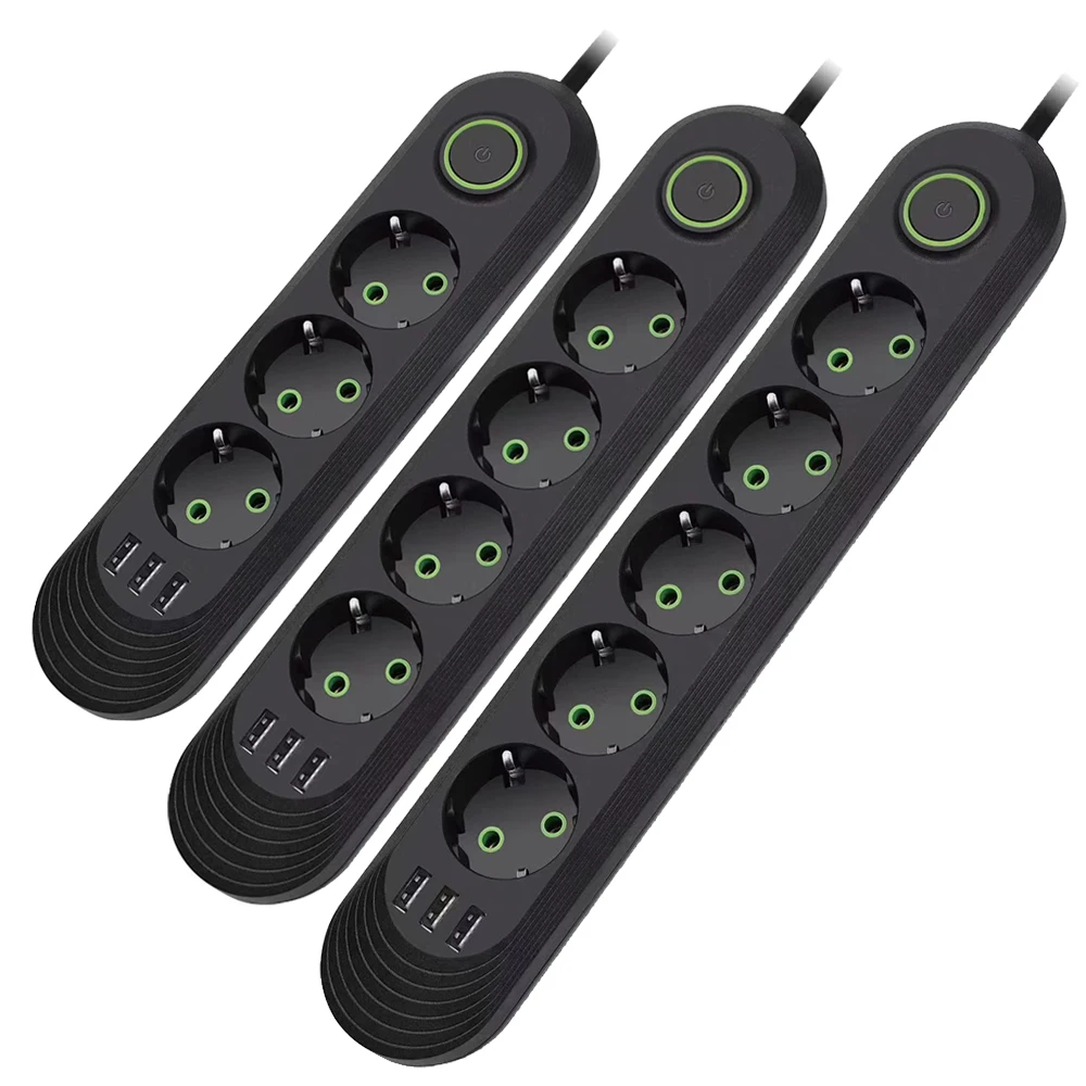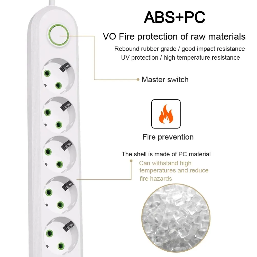 Comprar Tira de alimentación multifunción con enchufe europeo de 2500W, cable de extensión de 2m, enchufe eléctrico, filtro de red con puertos USB, carga rápida