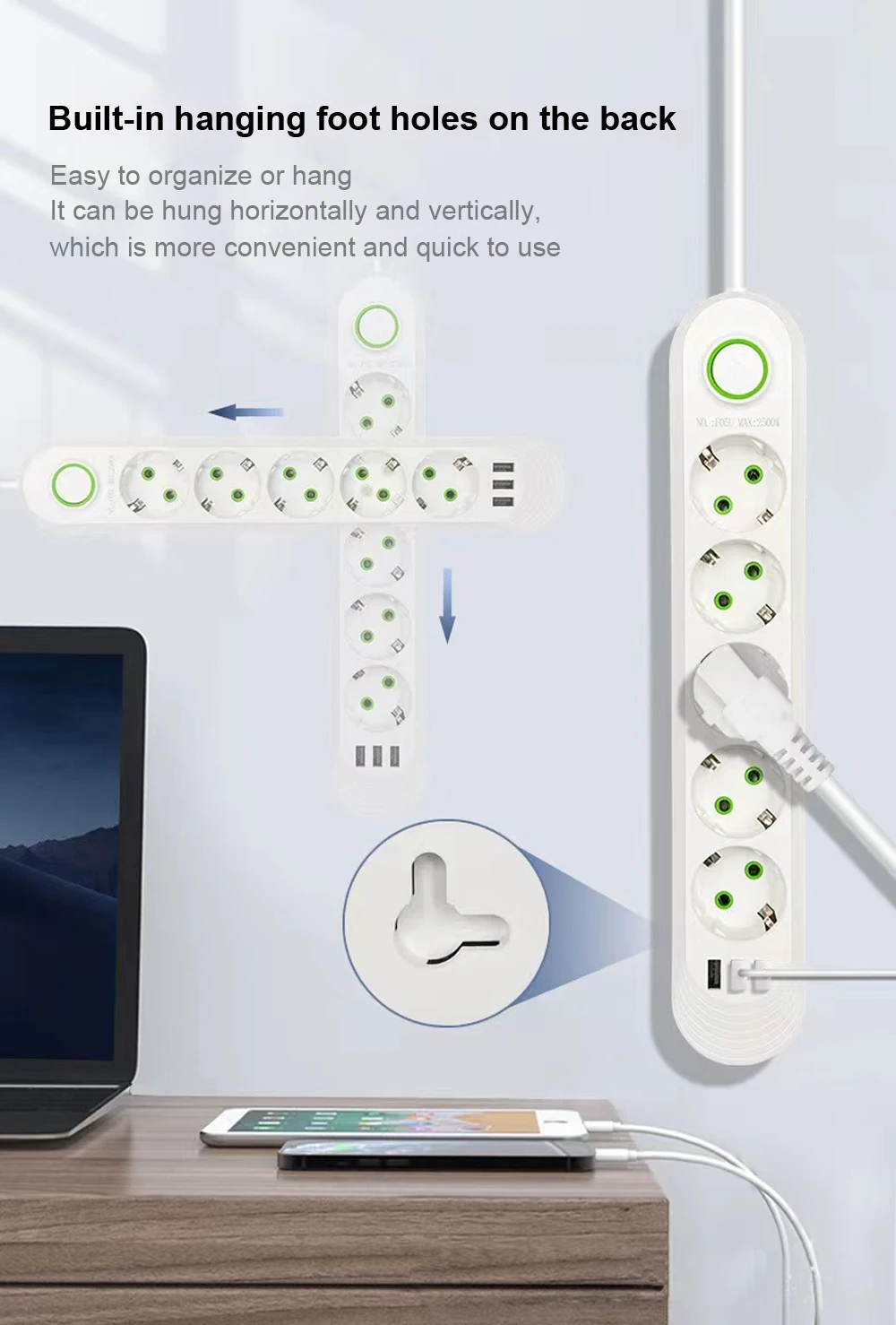 Más fácil de usar colgando el enchufe en la pared, más ahorro de espacio;