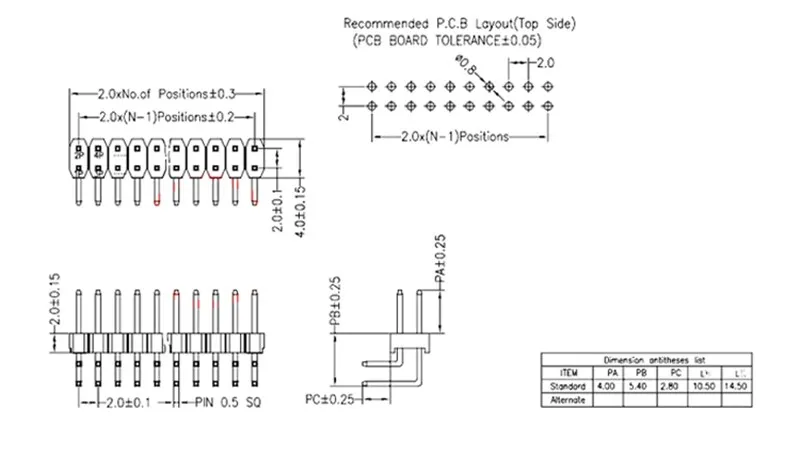 1. Espaciado: 2,0mm