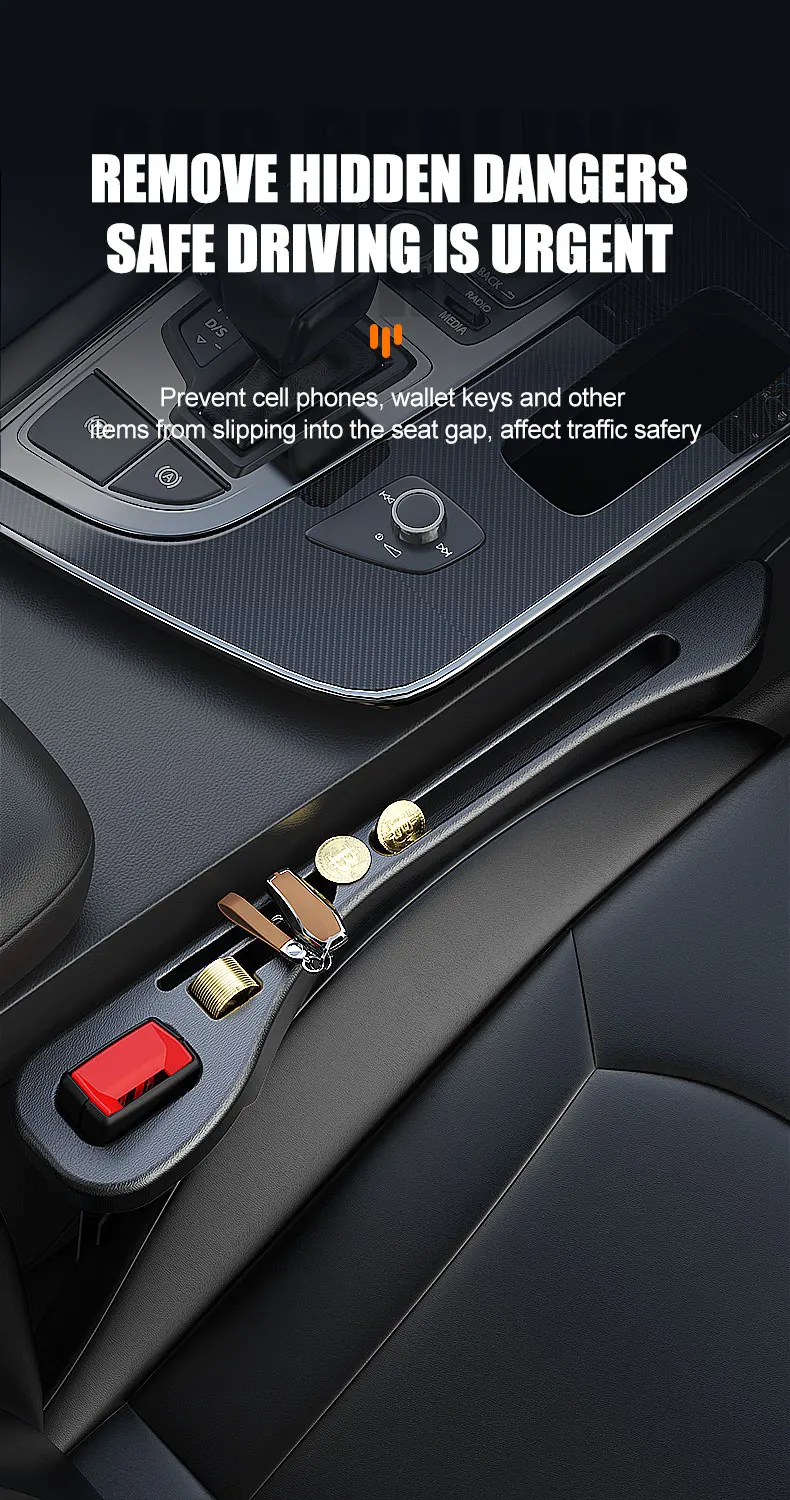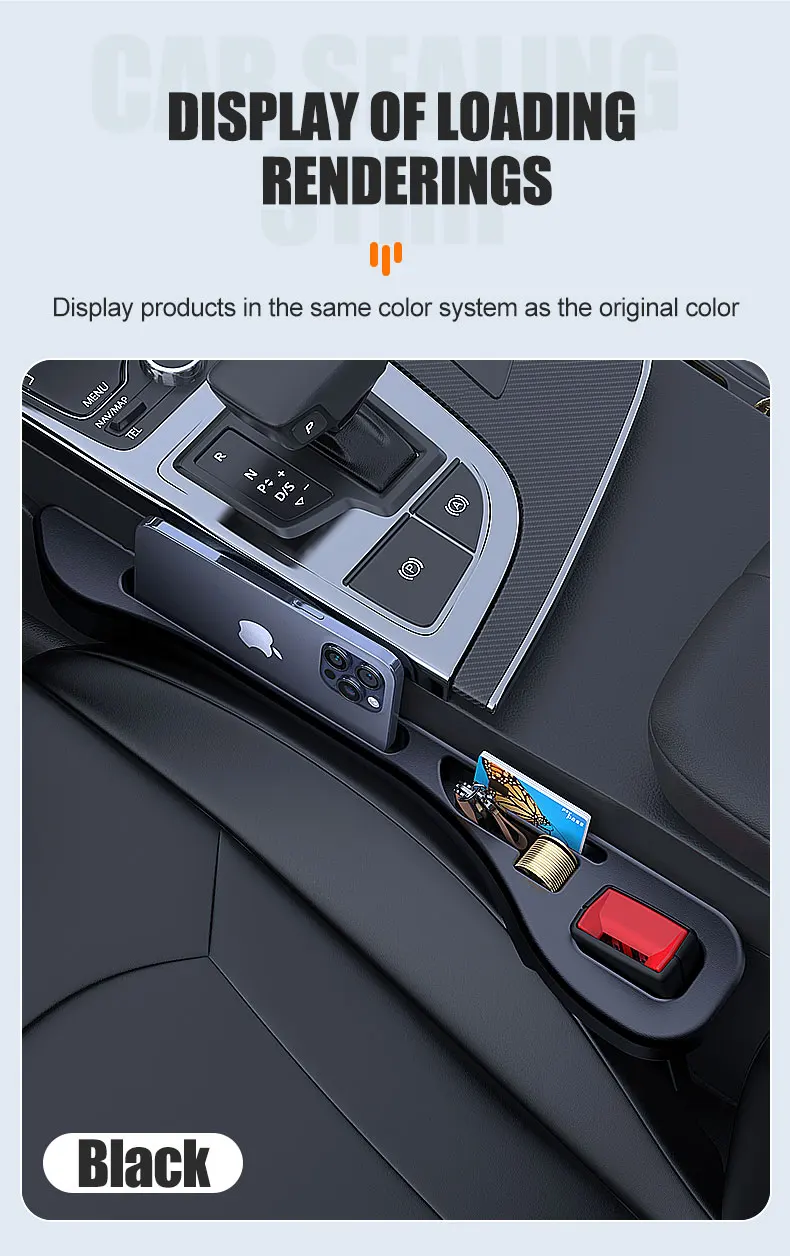 2. 】 * Llene el espacio entre el asiento del automóvil y la consola central, la tira de acolchado a prueba de fugas puede evitar que las botellas de agua, encendedores, teléfonos celulares y tarjetas se deslicen en el espacio.