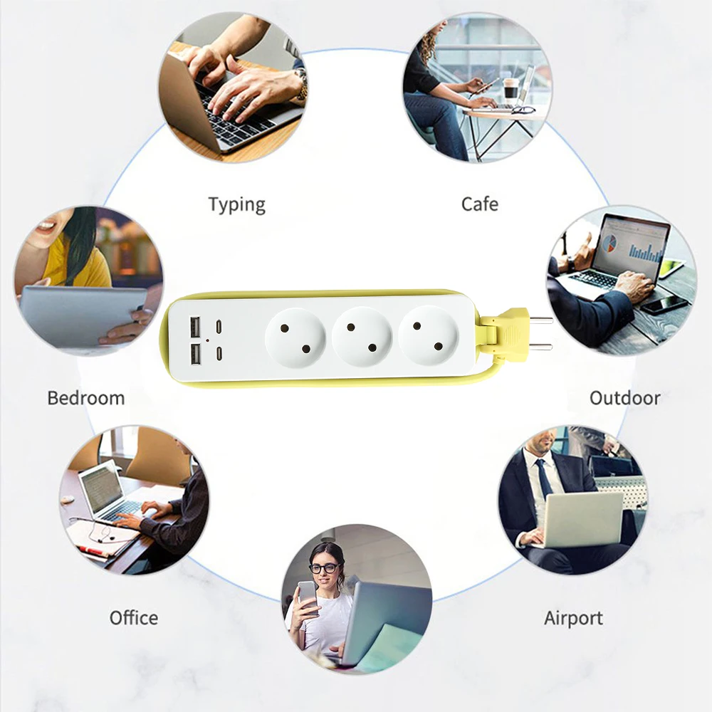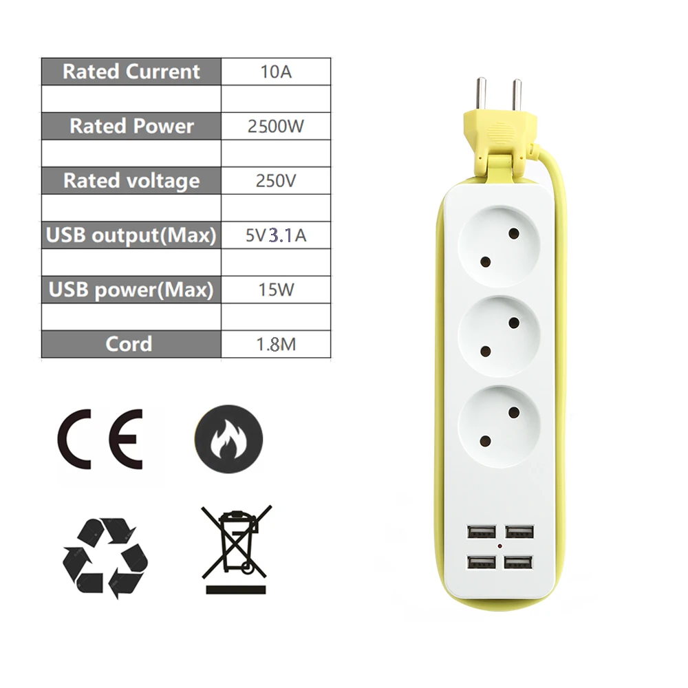 Comprar Tira de enchufe de viaje, enchufe europeo, salida de CA, cable de extensión, enchufe eléctrico, filtro de red con USB