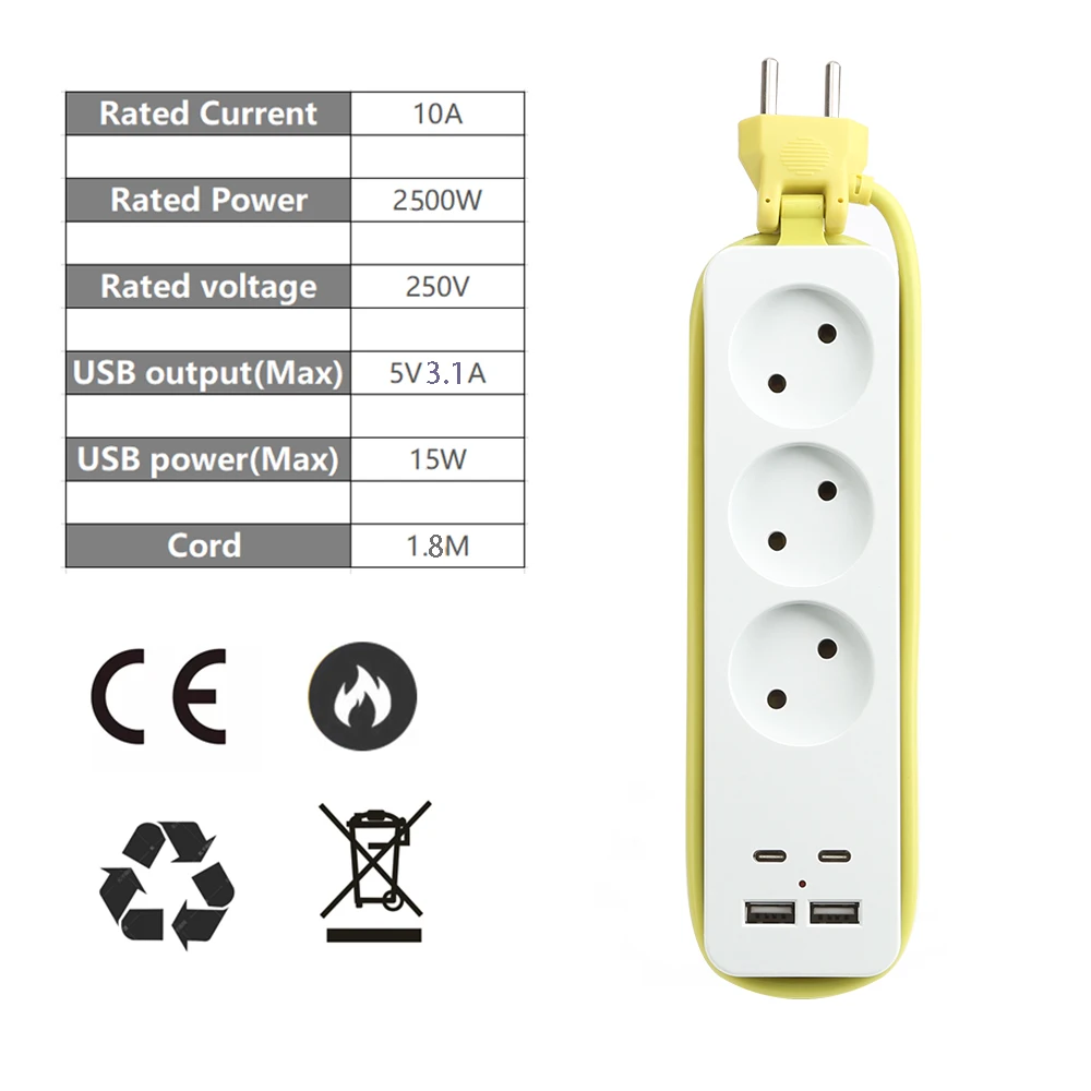 Especificaciones: 3AC 2USB 2 Tipo C/3AC 4USB (opcional).