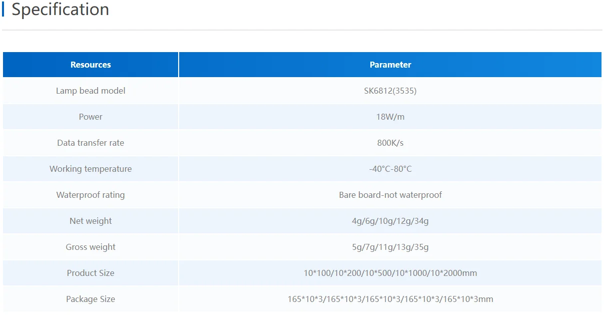 * Longitud alternativa: 10cm(15 LED)/20cm(29 LED)/0,5 M (72 LED)/1m(144 LED)/2m(288 LED)