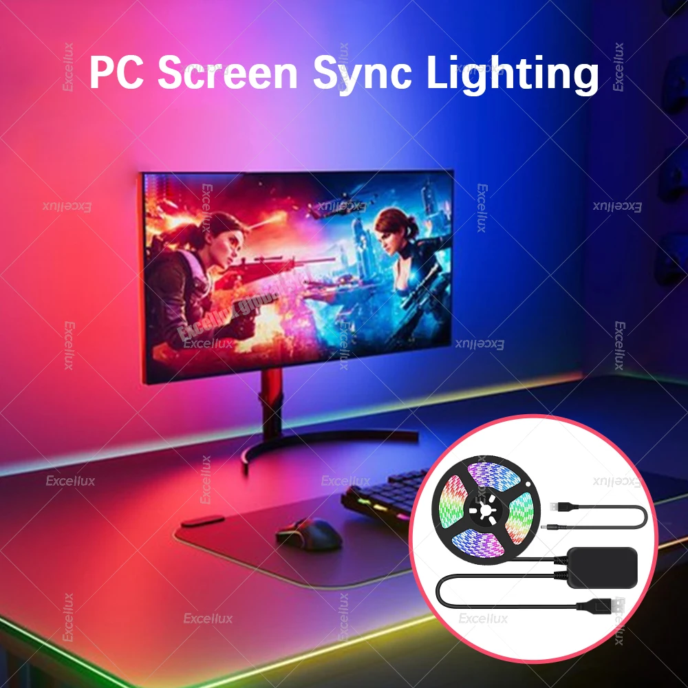 Comprar Tira de luces para juegos, sincronización de ordenador, tira de luces Led, Monitor, pantalla RGB, retroiluminación LED a Color, lámpara de captación, decoración de ambiente para sala de juegos