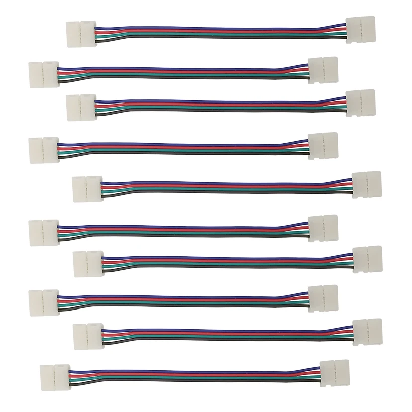Comprar Tira de luces LED de 10/20/30 piezas, Conector de 10mm, 4 pines, Cable de extensión, sin soldadura, 15cm, para RGB 5050 3528