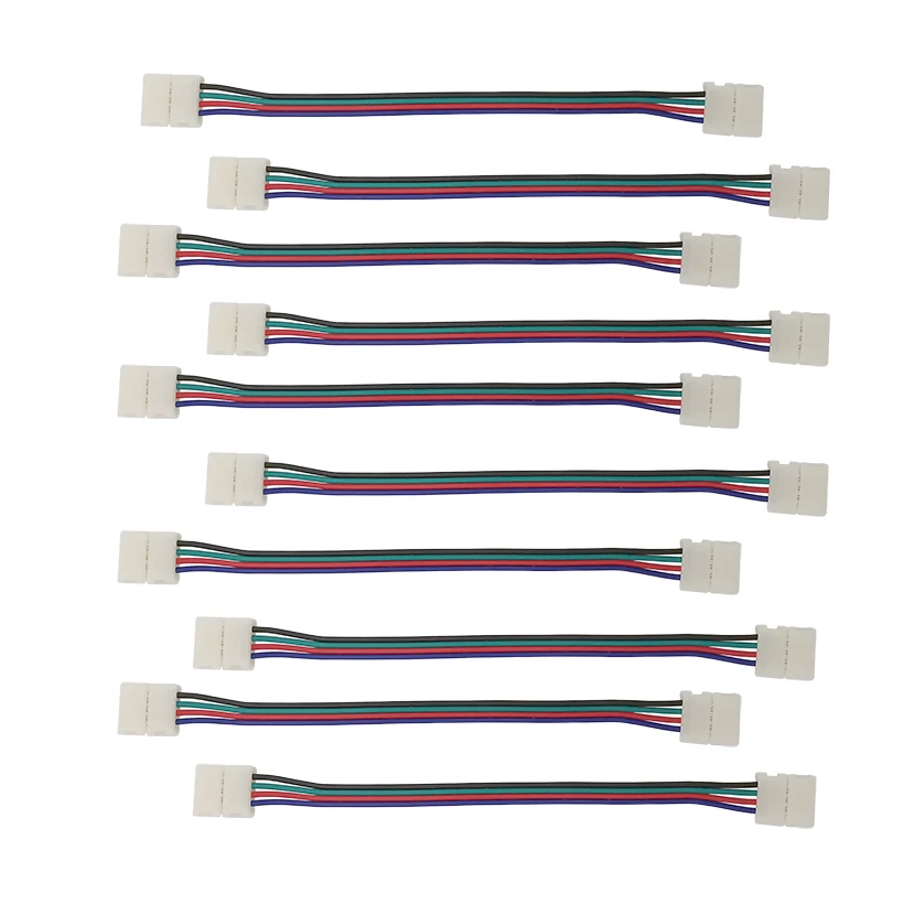 Comprar Tira de luces LED de 10/20/30 piezas, Conector de 10mm, 4 pines, Cable de extensión, sin soldadura, 15cm, para RGB 5050 3528