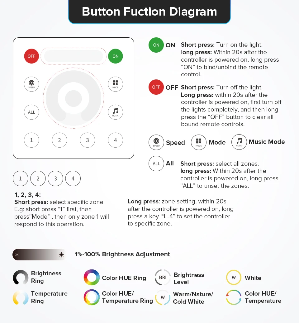 Comprar Tira de luces LED de 3V, mando a distancia SPI PWM para SP63 * E, 2,4 GHz, FCOB, DIM, CCT, RGB, RGBW, WS2812B