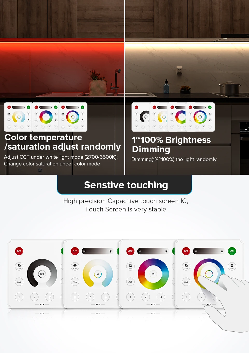 Mando a distancia LED táctil de pared SPI PWM para controlador SP63 * E 2,4 GHz FCOB DIM CCT RGB RGBW WS2812B píxeles tira de luz LED 3V, a prueba de agua, a prueba de agua