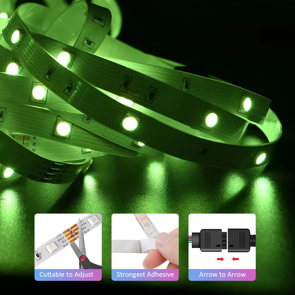 Comprar Tira de luces LED 5050 RGB, luces de cinta flexibles de Color con Control por aplicación, tira de luces LED RGB