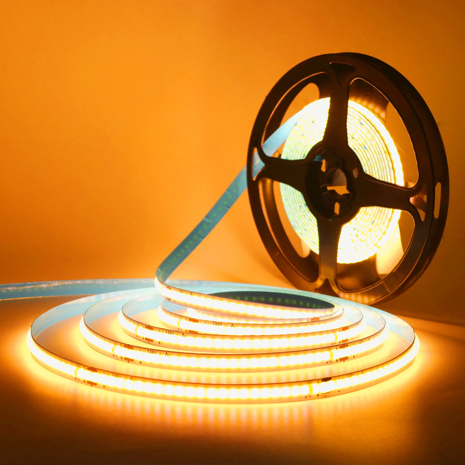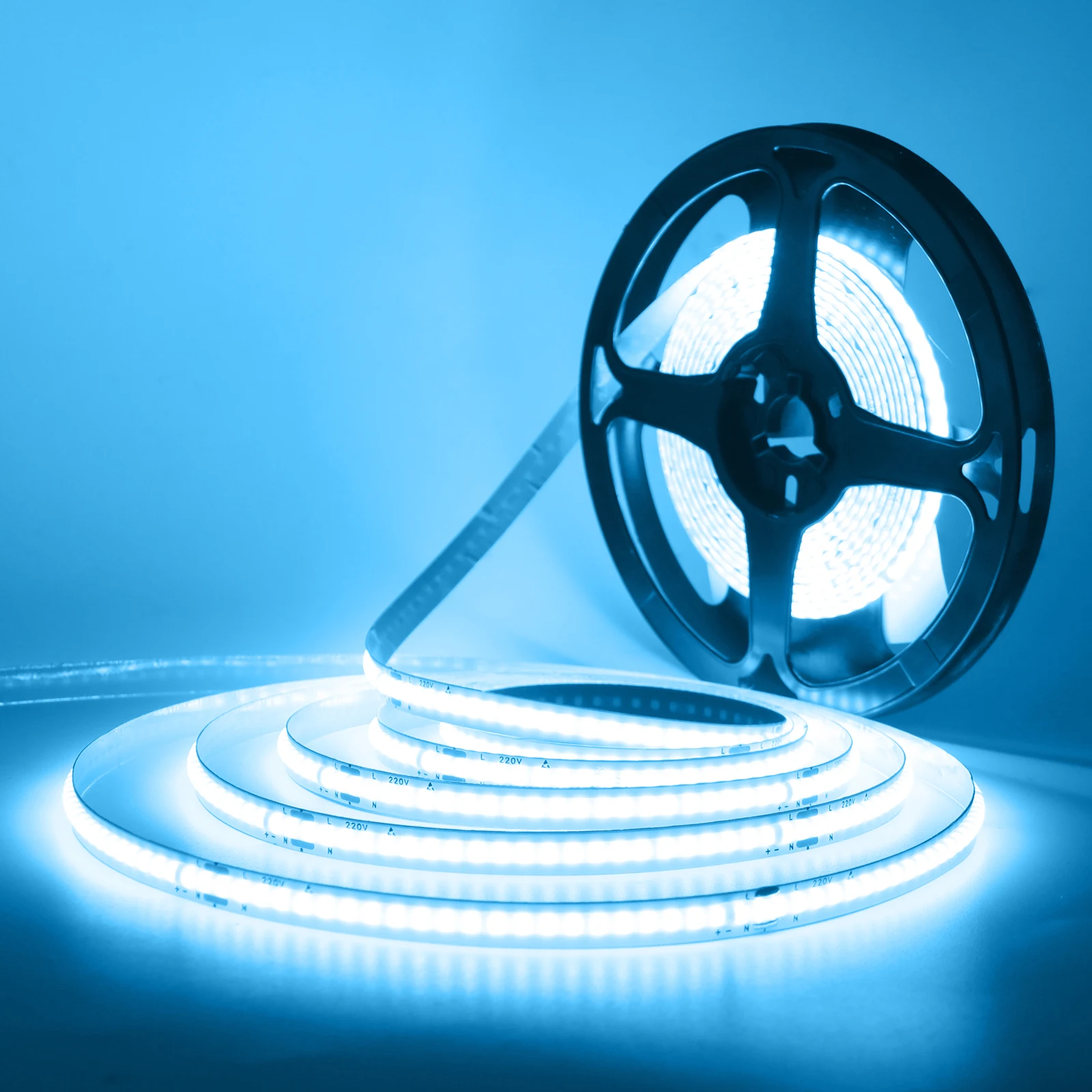 La tira de luz COB de 220 V tiene alta potencia, por lo que no se permite enrollar las tiras de luz juntas durante mucho tiempo para encenderse, y la disipación de calor debe realizarse bien.