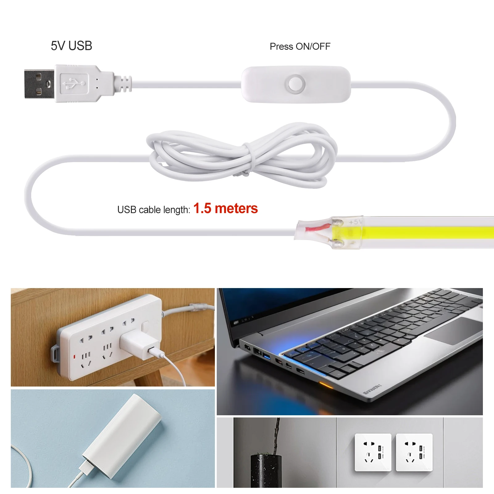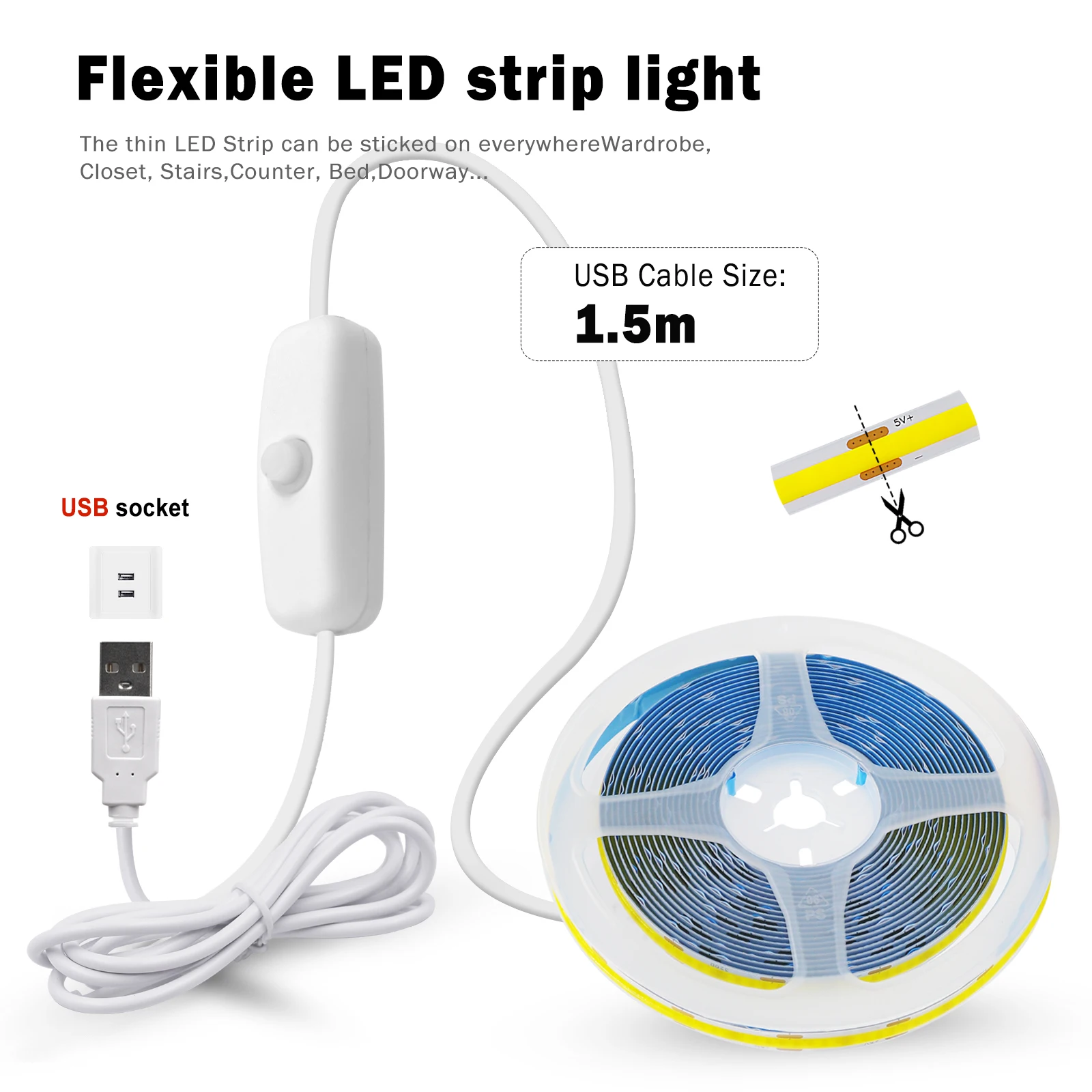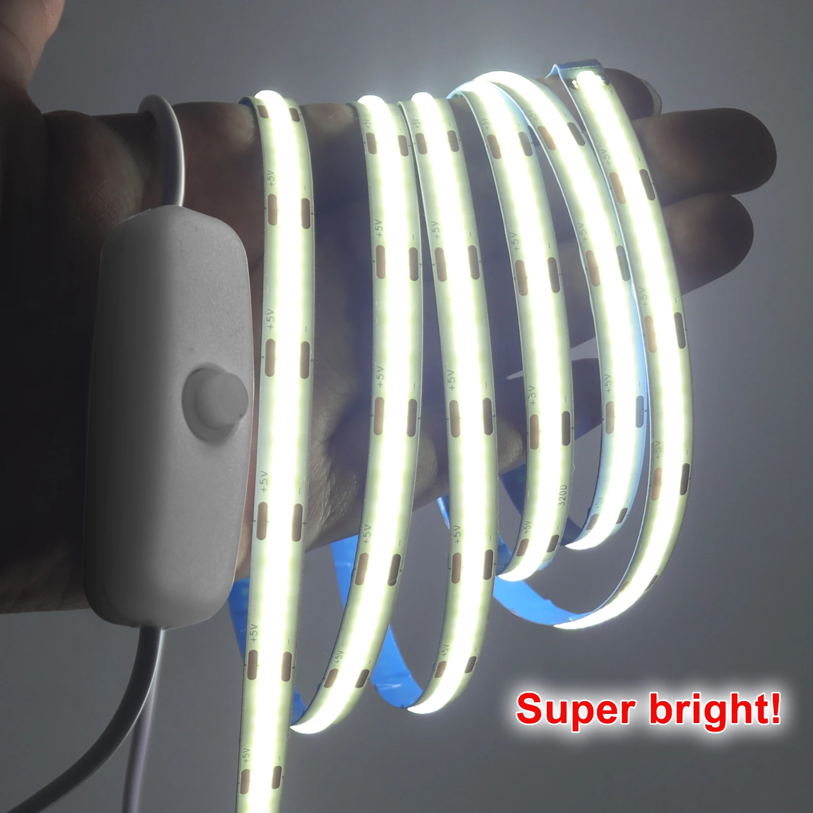 1 tira LED COB USB con interruptor(fuente de alimentación NO incluida)