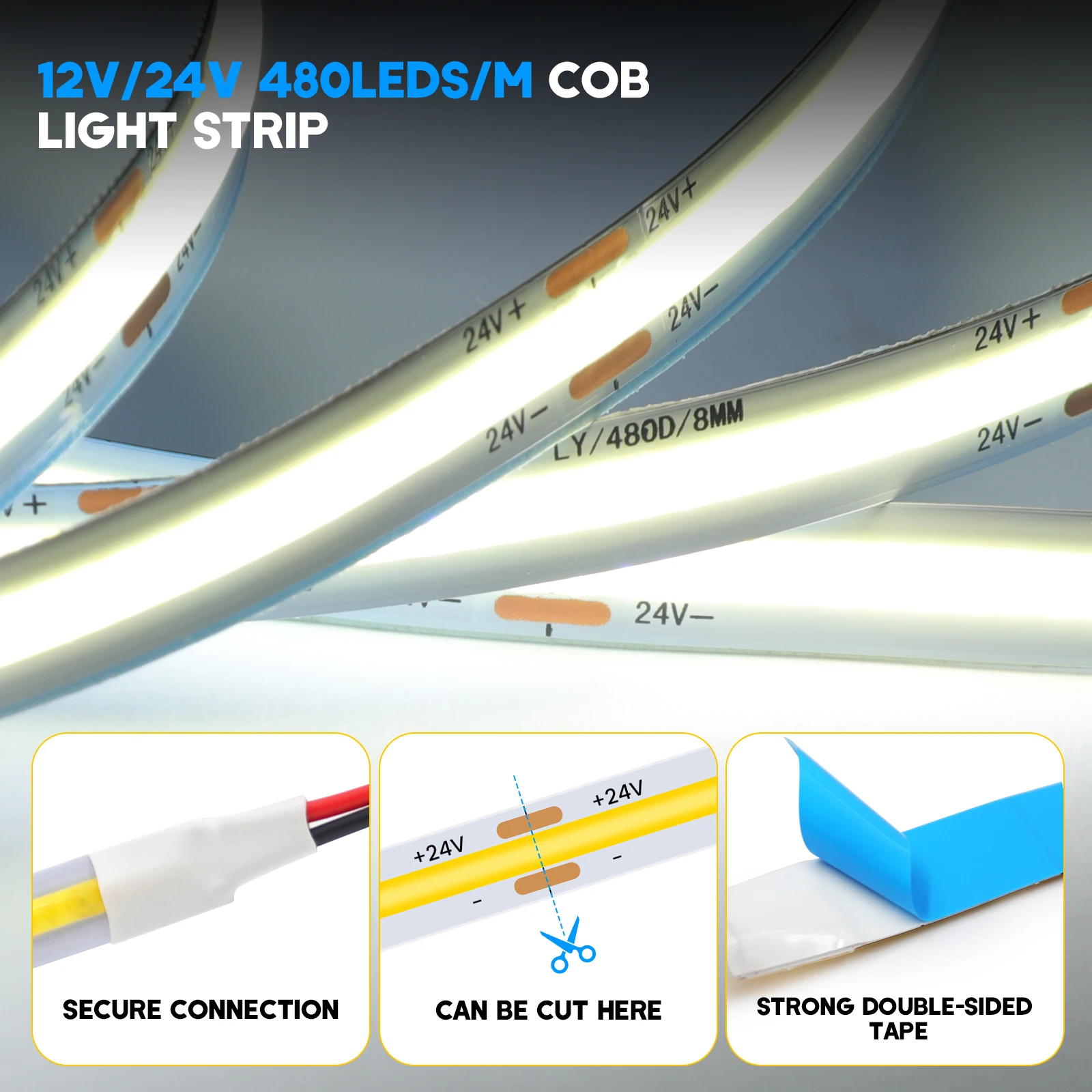 Tipo: tira de luz LED COB flexible (PCB de 8mm)