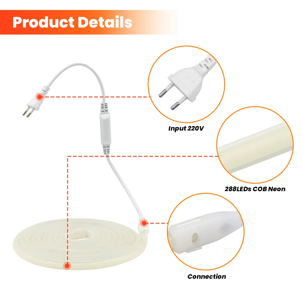 Enchufe de alimentación de CA 110 V EE. UU.:Tira de LED COB AC110V + enchufe de alimentación de EE. UU. (se pueden cortar cada 25 cm,enchufe de alimentación Sin interruptor