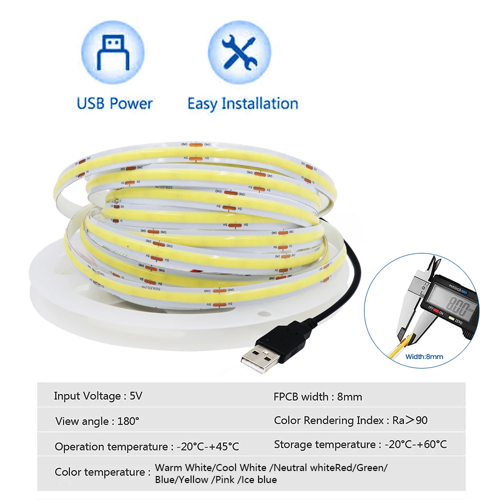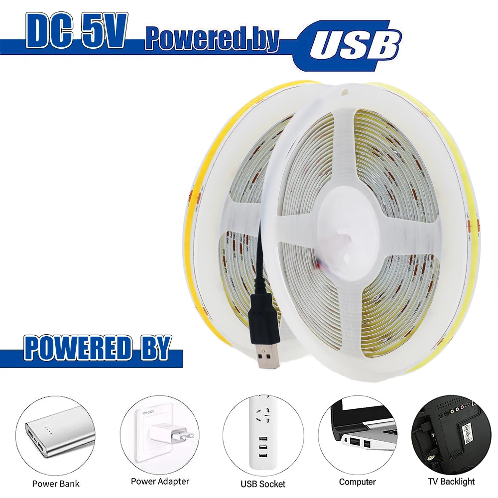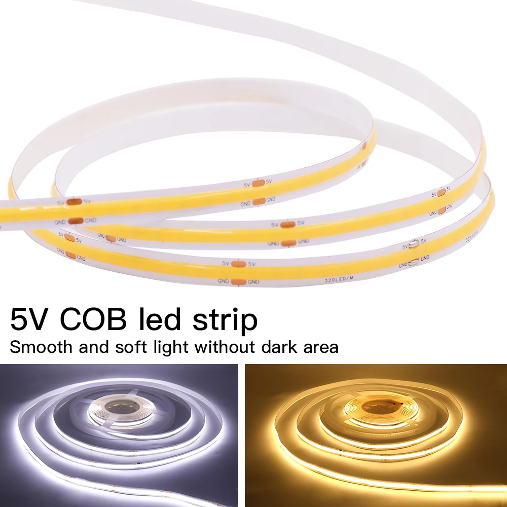 1 tira de luz LED COB de 5 V (*la fuente de alimentación no está incluida)