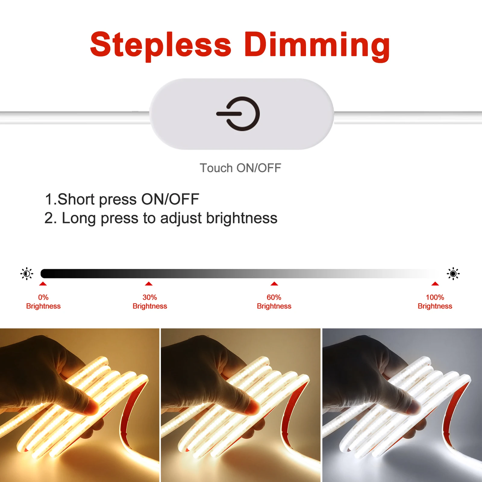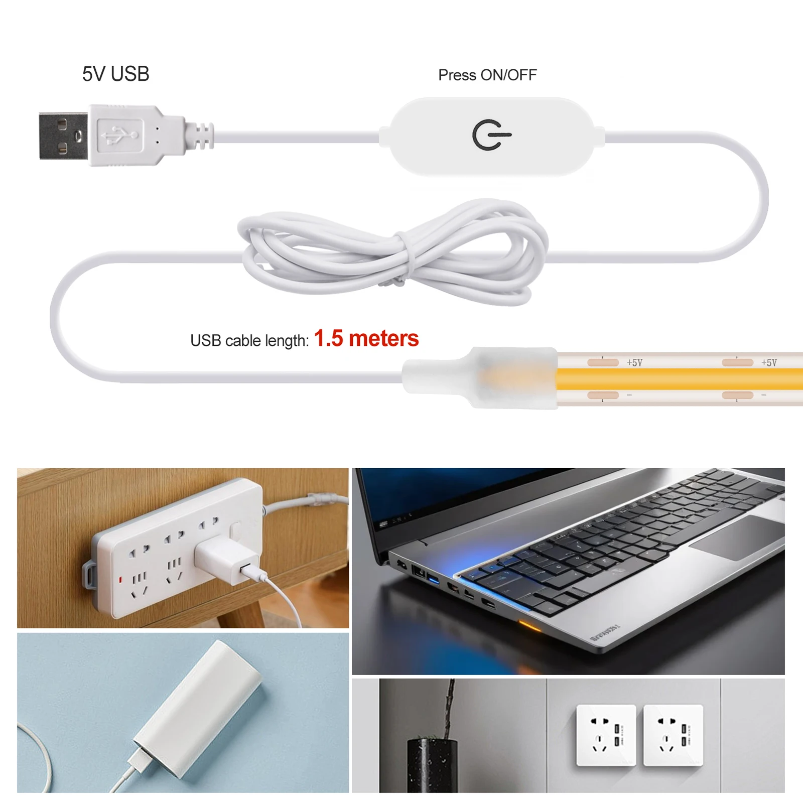 1 tira de LED COB de 5 V (no incluye fuente de alimentación)