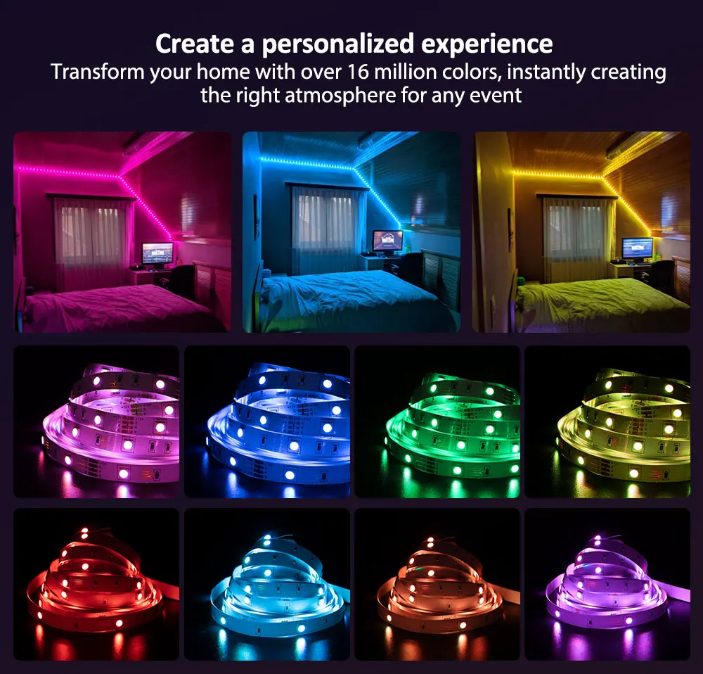 La luz RGB es perfecta para decorar tu dormitorio, sala de estar o cocina.