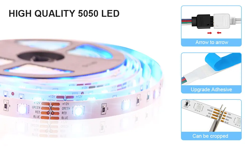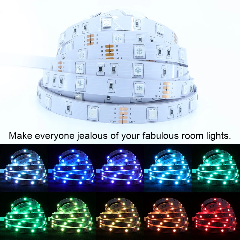 Comprar Tira de luces Led de colores RGB 5050SMD, luz Led de buena calidad, Cutable , linkable, regulable, 16 millones de colores