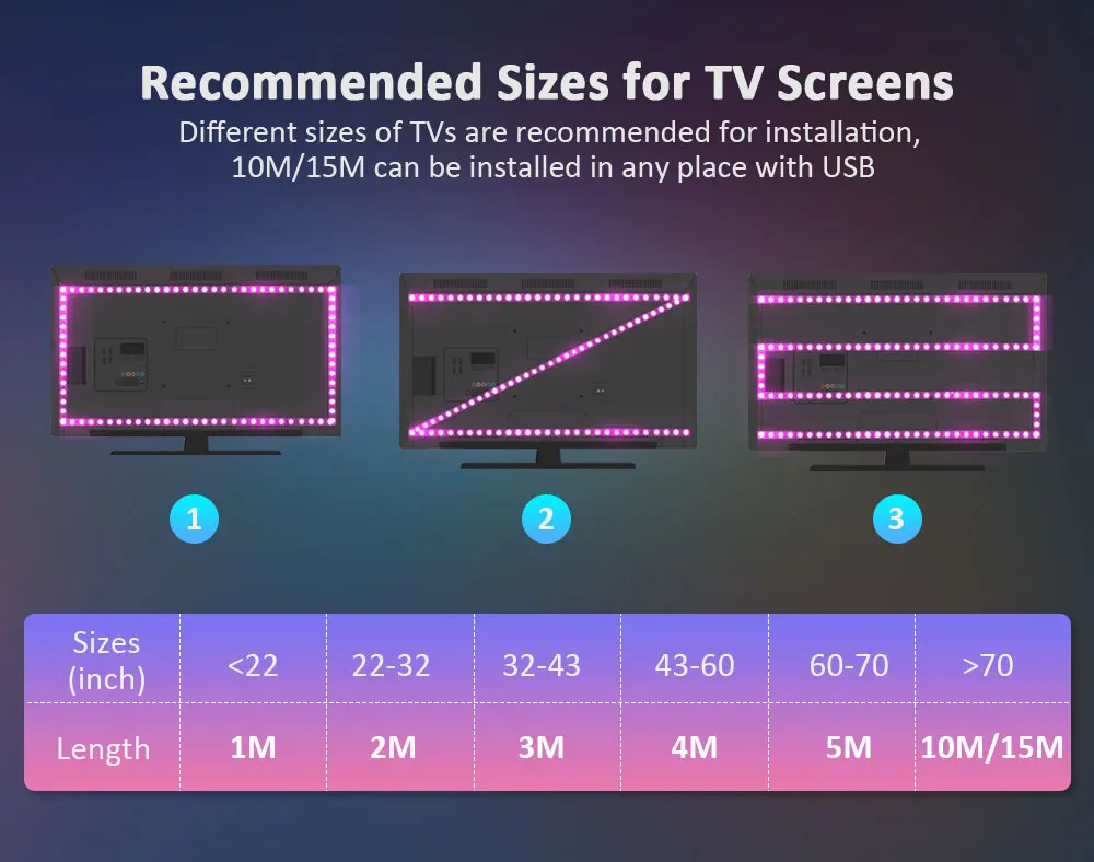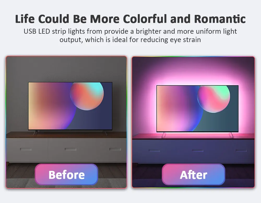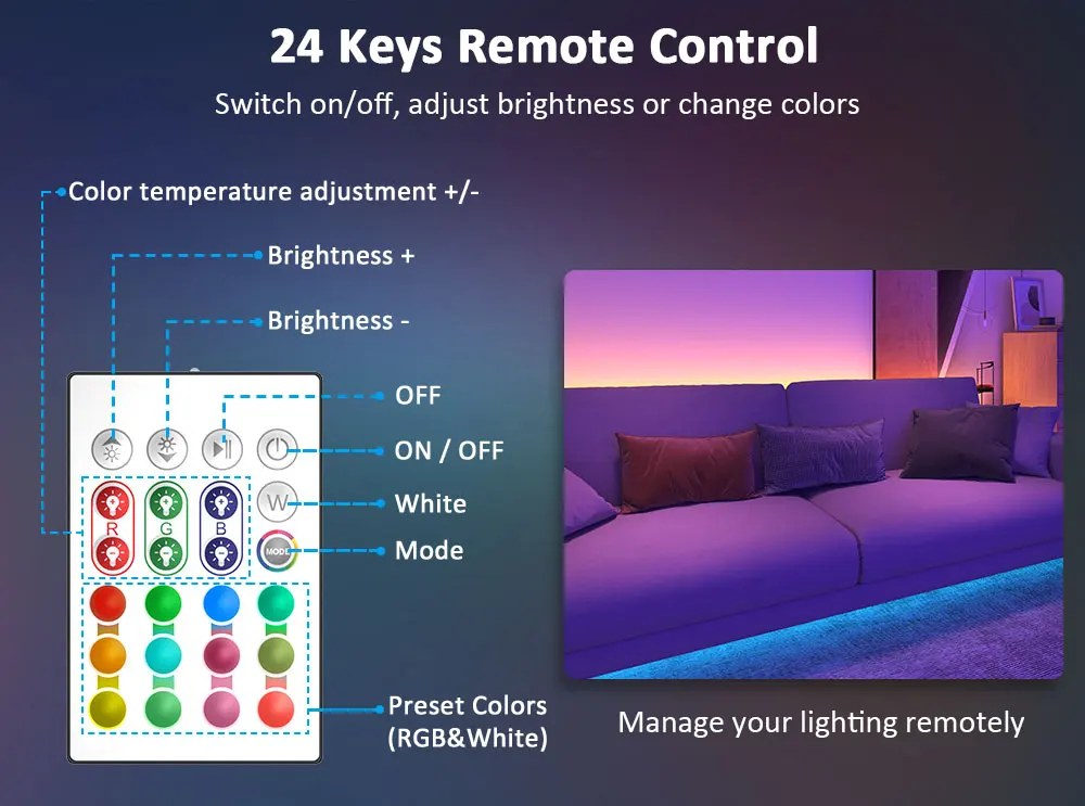 Versión mejorada: La aplicación mejorada es "Illumi Home" en lugar de la aplicación happylighting original, también viene con un control remoto IR, también es adecuado para casi todos los tamaños de TV en el mercado.