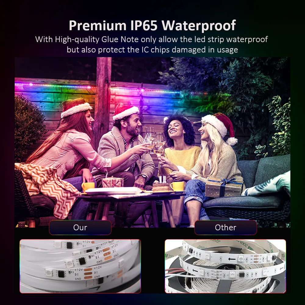 Comprar Tira de luces LED de colores RGB, efecto Multicolor, resistente al agua, arcoíris, con control remoto, 11 modos de escena, 5M