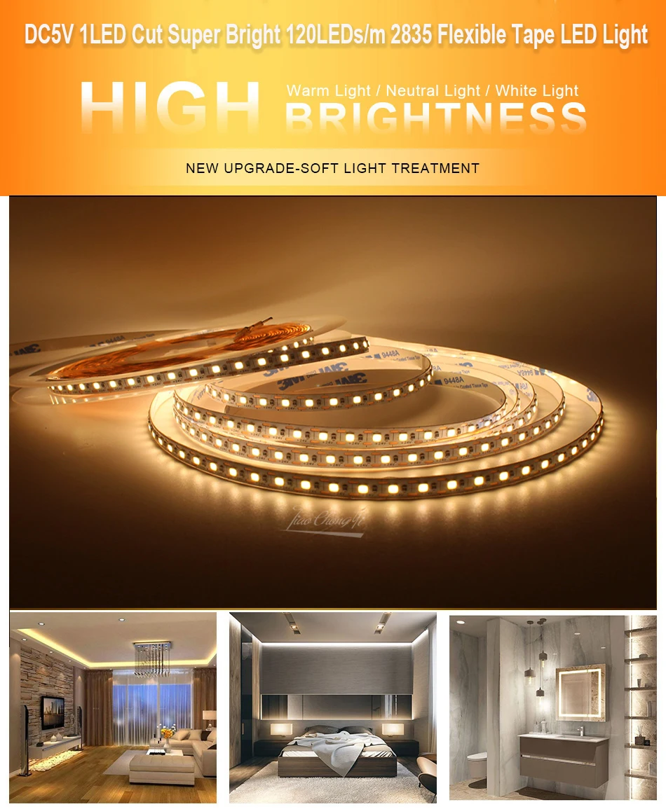 Máx.5 metros/rollo 5V 2835 120 luces resaltan la tira de luz