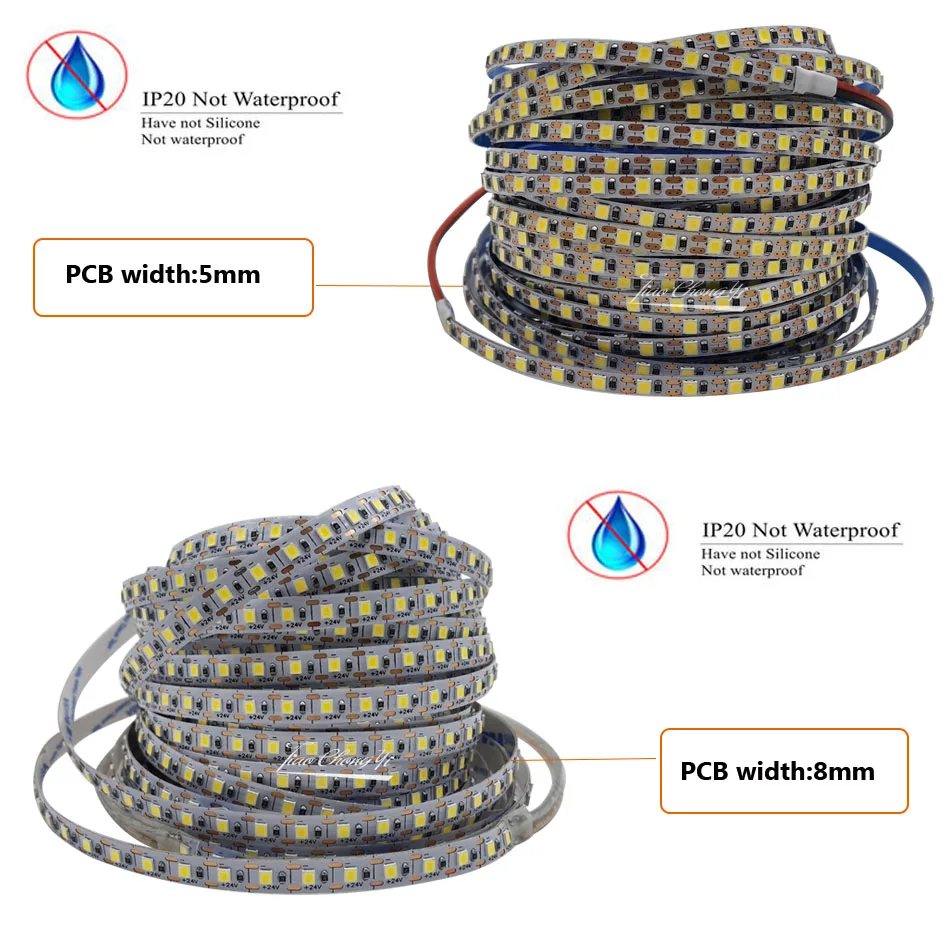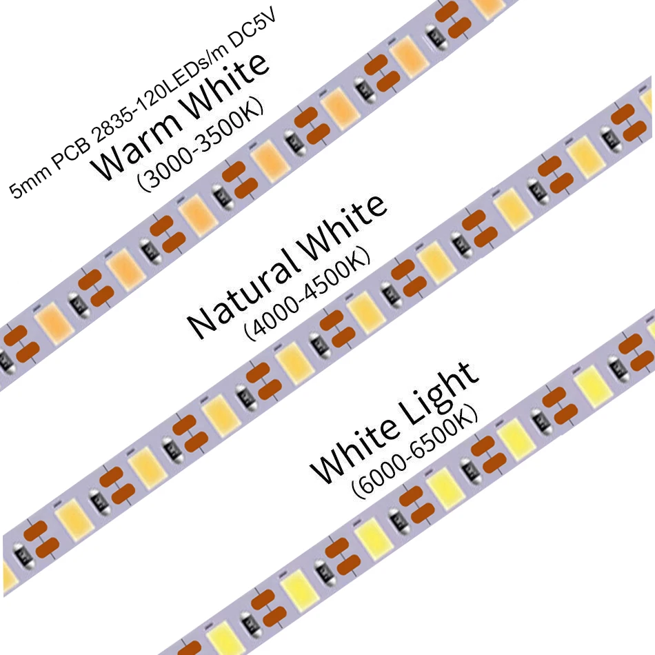 Tira de LED PCB 2835 de 5mm, 8mm, 5V, 1 corte LED, súper brillante, 120LED/m, cinta Flexible, luz LED, 5M blanco/blanco cálido/blanco Natural