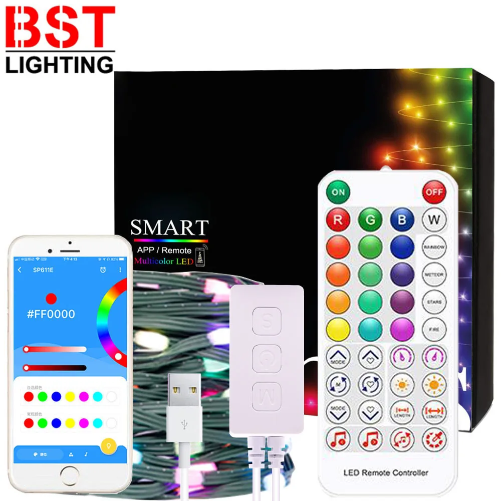 Comprar Tira de luces LED direccionables individualmente IC, controlador de música Bluetooth, DC5V, WS2812B, USB de Navidad, WS2812
