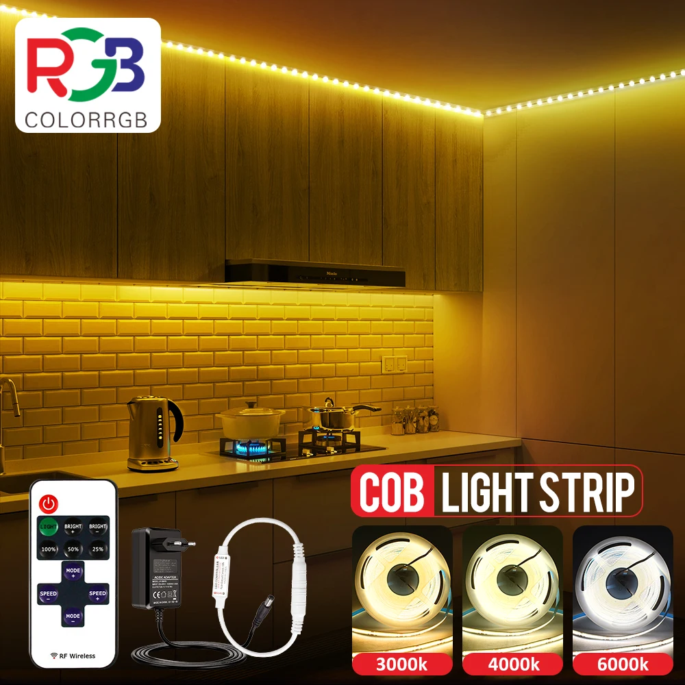 Comprar Tira de luces LED FCOB de alta densidad, 10M, Flexible, FOB, COB, Luz lineal regulable, 3000K, 4000K, 5000K