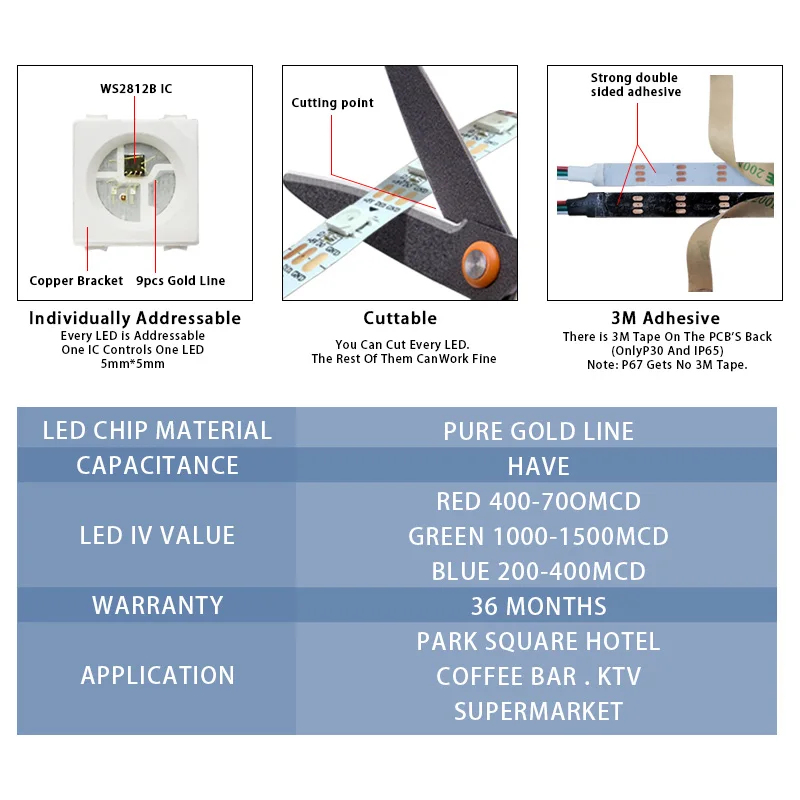 1. Tira de luz CC de bajo voltaje, control único de punto único de 5V