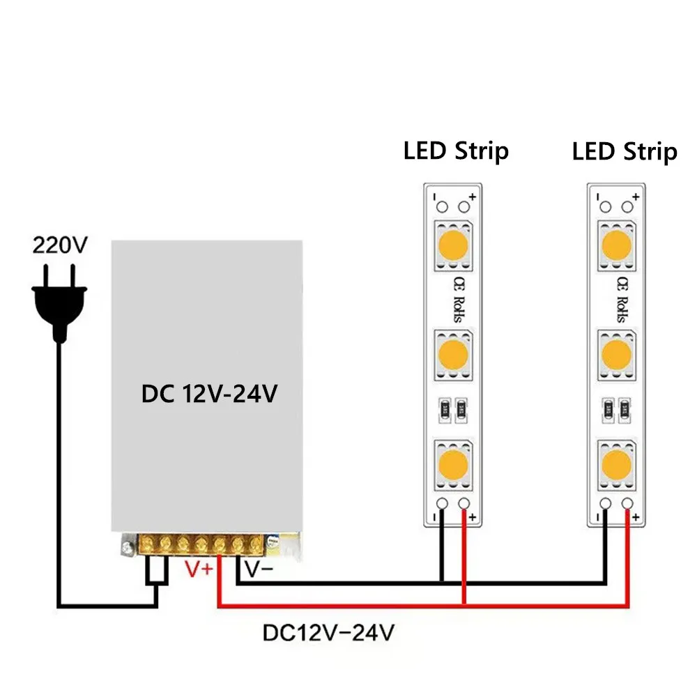 2.La tira de luz es DC12V, por lo que requiere una fuente de alimentación DC12V.