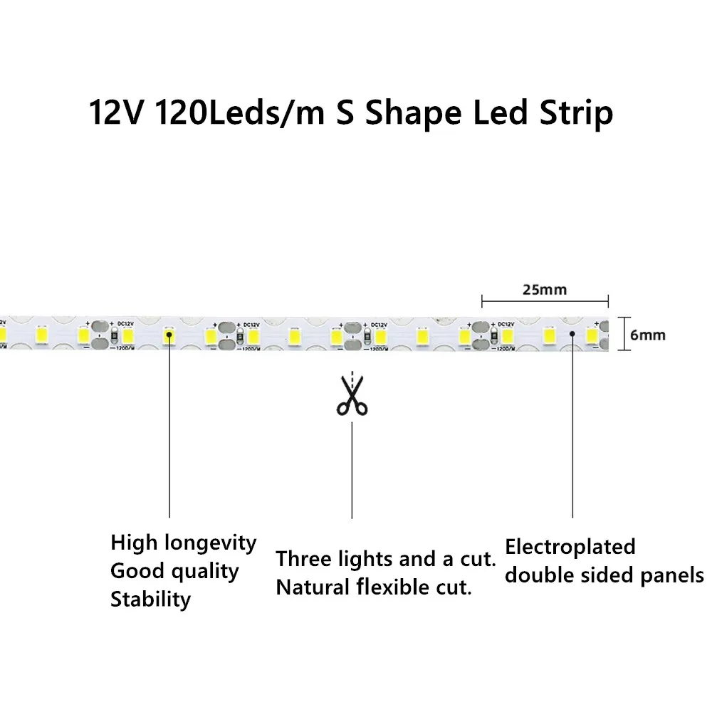 Comprar Tira de luces LED en forma de S de 12V CC, 6mm de ancho, Flexible, 2835 SMD, 120LED/m, tira de luces Led plegable Flexible, barra de luces, letrero de neón DIY