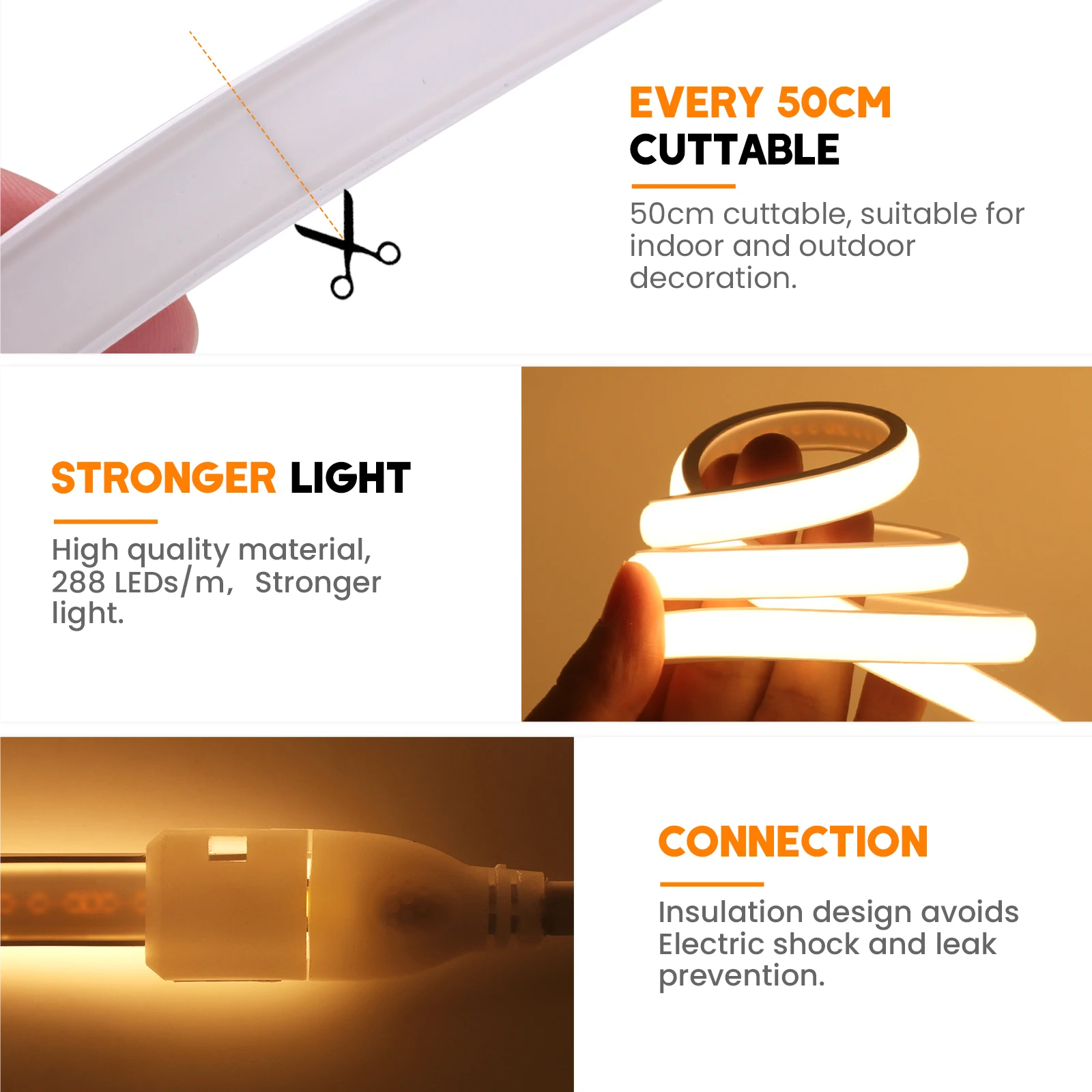 Cuttable: every 50CM can be cut, easy to install