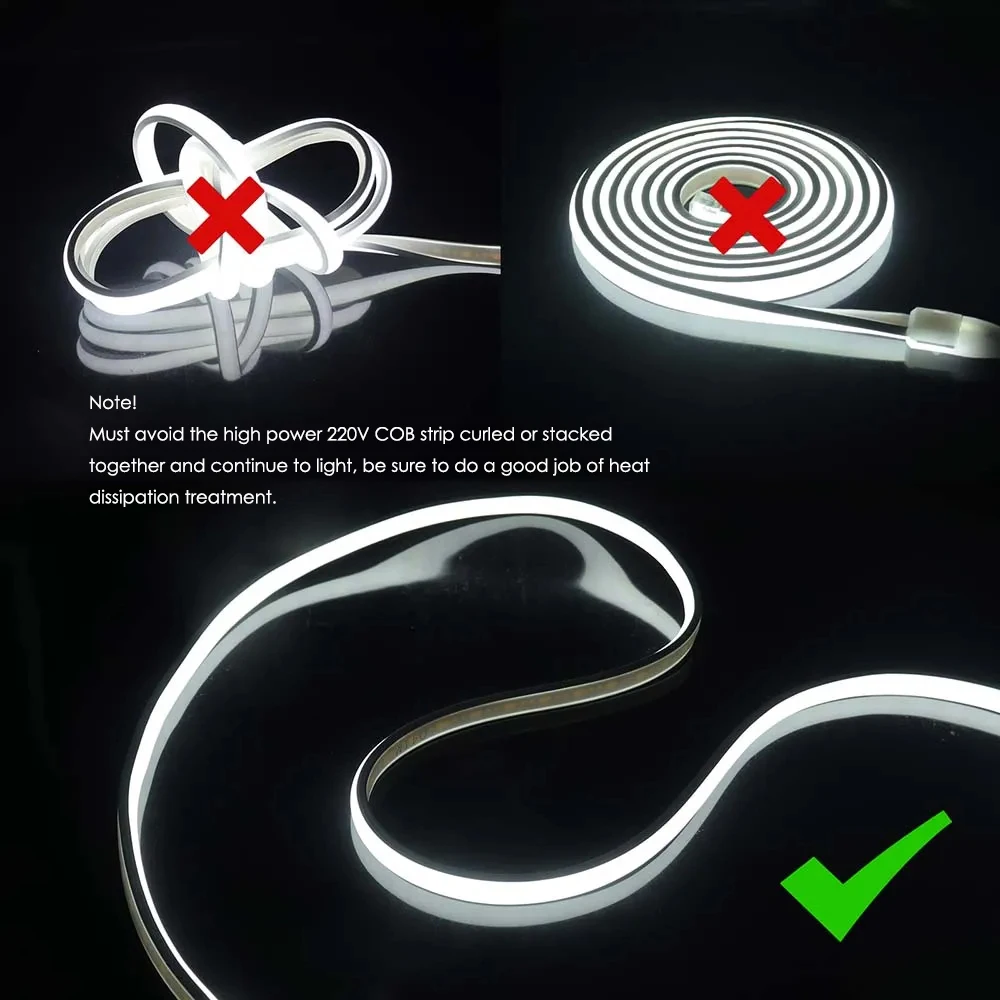 NOTE:Must avoid the high voltage 220V Led strip curled or stacked(Must spread them out)!
