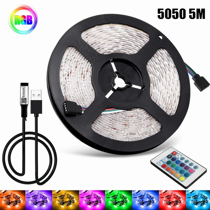 Comprar Tira de luces Led RGB 5050 de 5V, control remoto para decoración de sala de estar, Fondo de fiesta, cadena de iluminación de neón