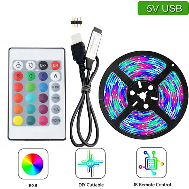 Tira de luz LED RGB de 5V USB 2835 60Led/m 0,5m 1m 2m 4m 5m lámpara Bluetooth Control infrarrojo TV retroiluminación decoración de fiesta en casa