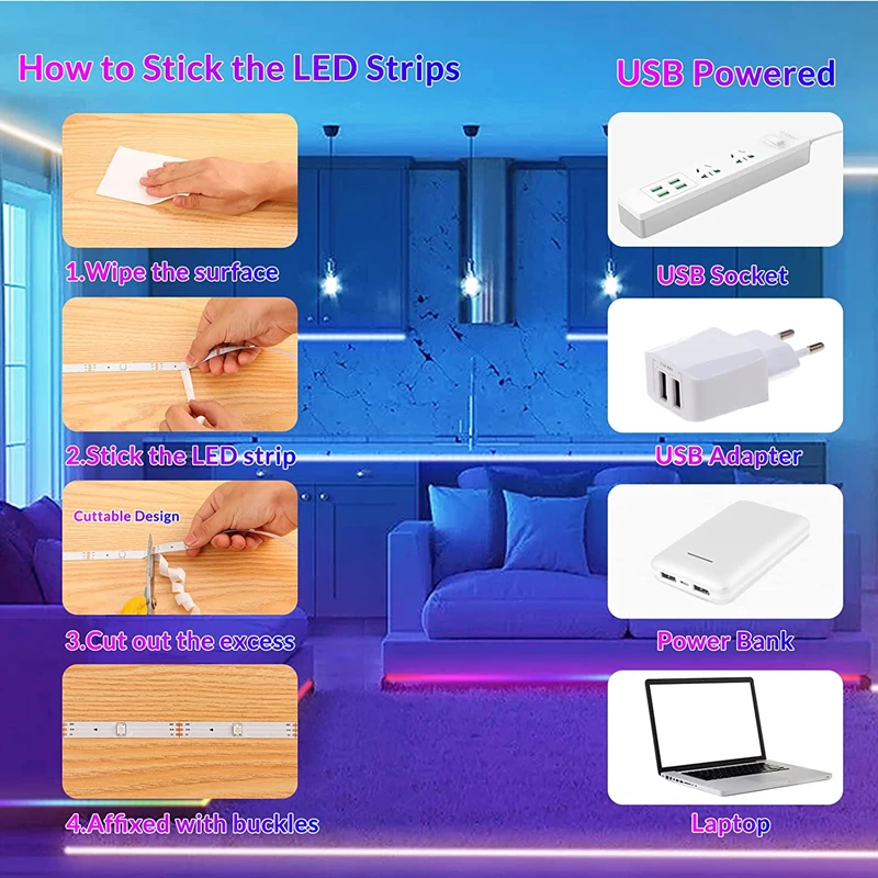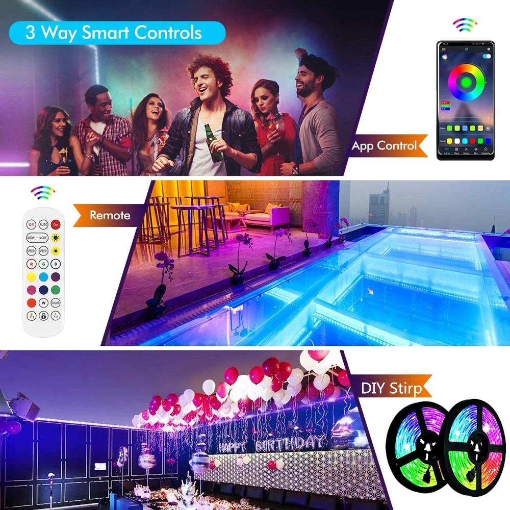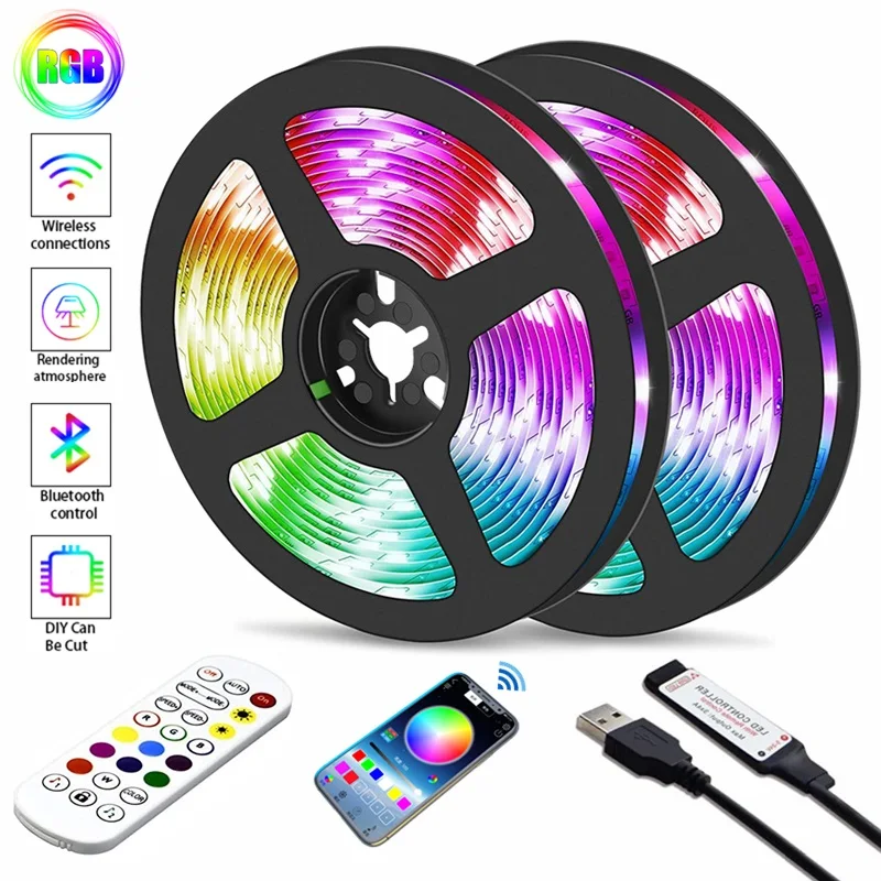 Comprar Tira de luces LED RGB con control remoto por Bluetooth, cinta Flexible con Cable USB, DC5V, para decoración de sala de estar, 5050, 2835