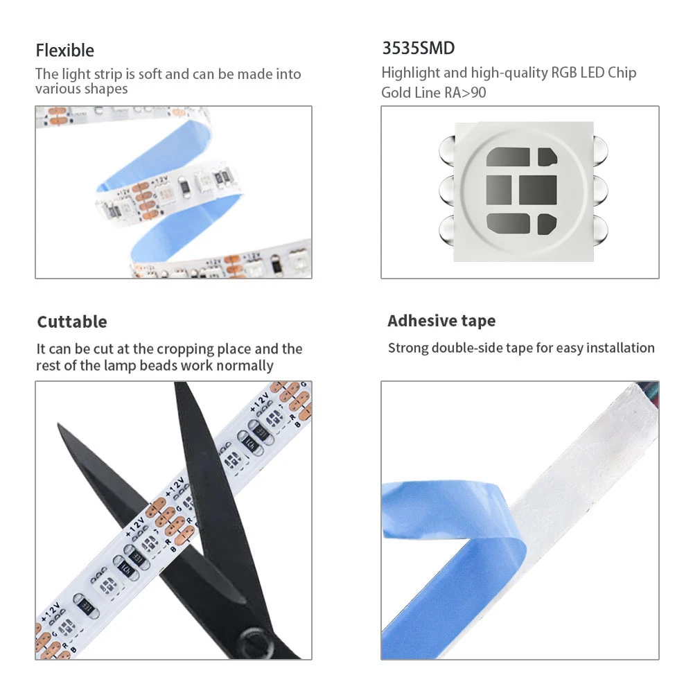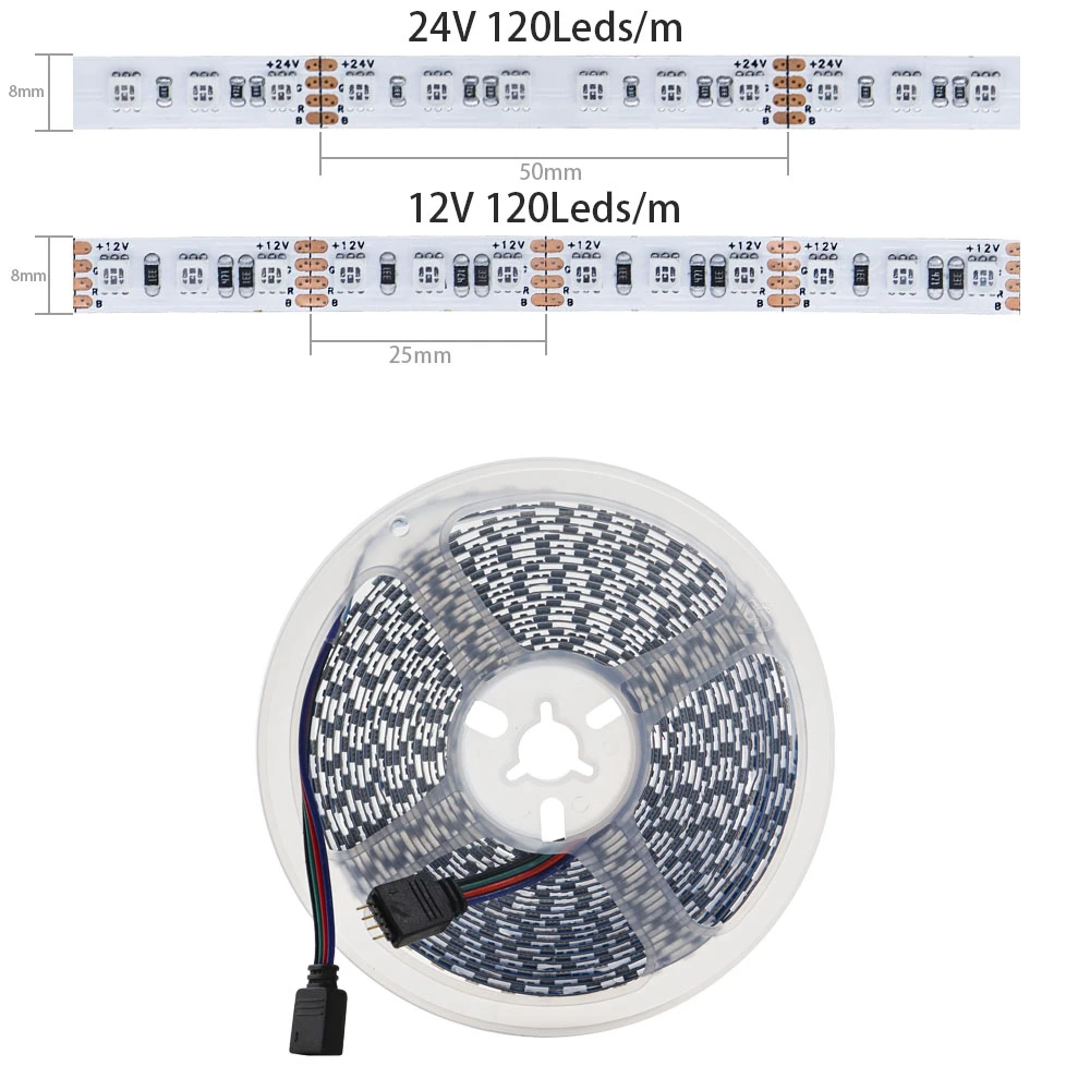 Comprar Tira de luces LED RGB para decoración del hogar, cinta Flexible cambiable de Color IP30, PCB, DC 12V/24V, 8mm, 120Leds/m, 3535SMD
