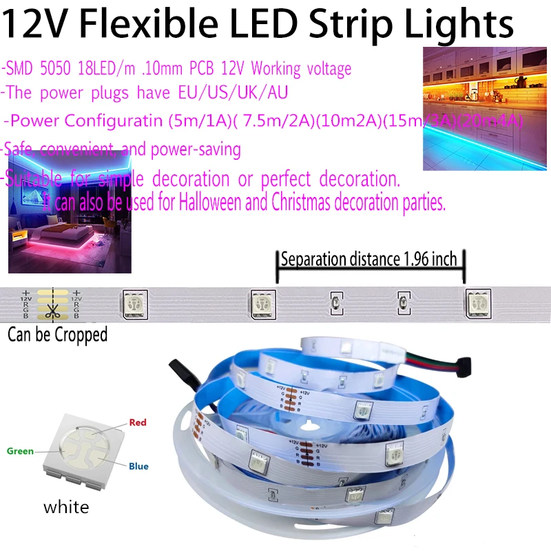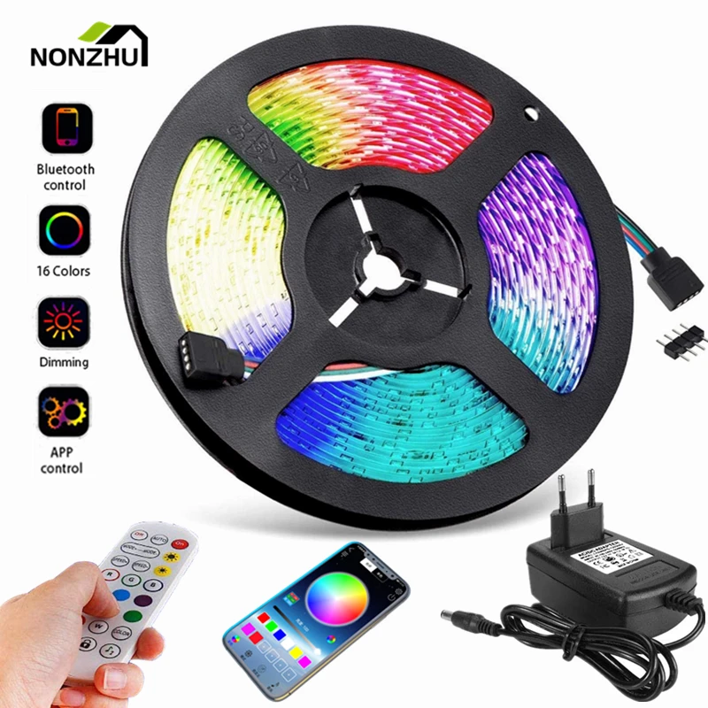 Comprar Tira de Luces Led RGB para decoración del hogar, iluminación luminosa para sala de estar, Control por Bluetooth, Fita, 5050 SMD, diodo