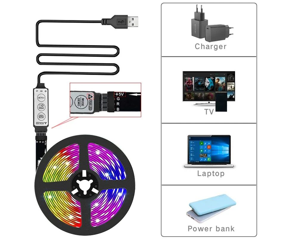 Tira de luces Led RGB para Tv 5050, cinta de luz Led Bluetooth de 5V, tiras de iluminación Led de sincronización de música, tira de luces Led inteligentes, 5v Usb