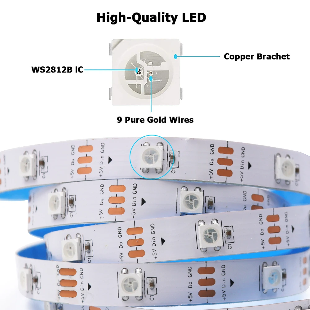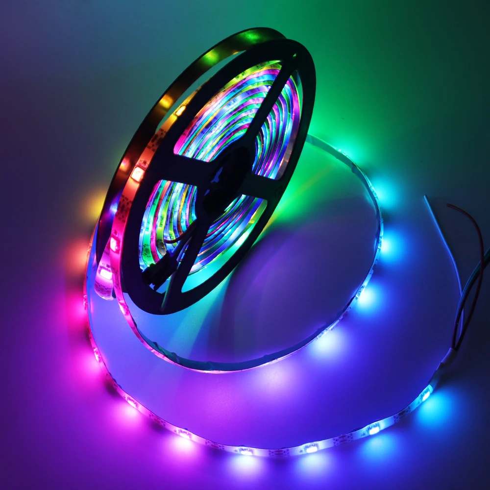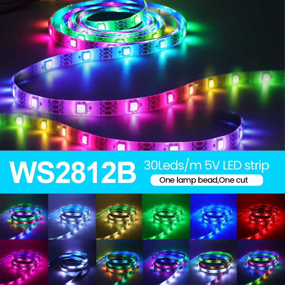 Comprar Tira de luces LED RGB WS2812B, cinta de píxeles direccionable con control remoto para lámpara trasera de TV, DC5V, 1-5M, IP30/IP65 con Kit de alimentación