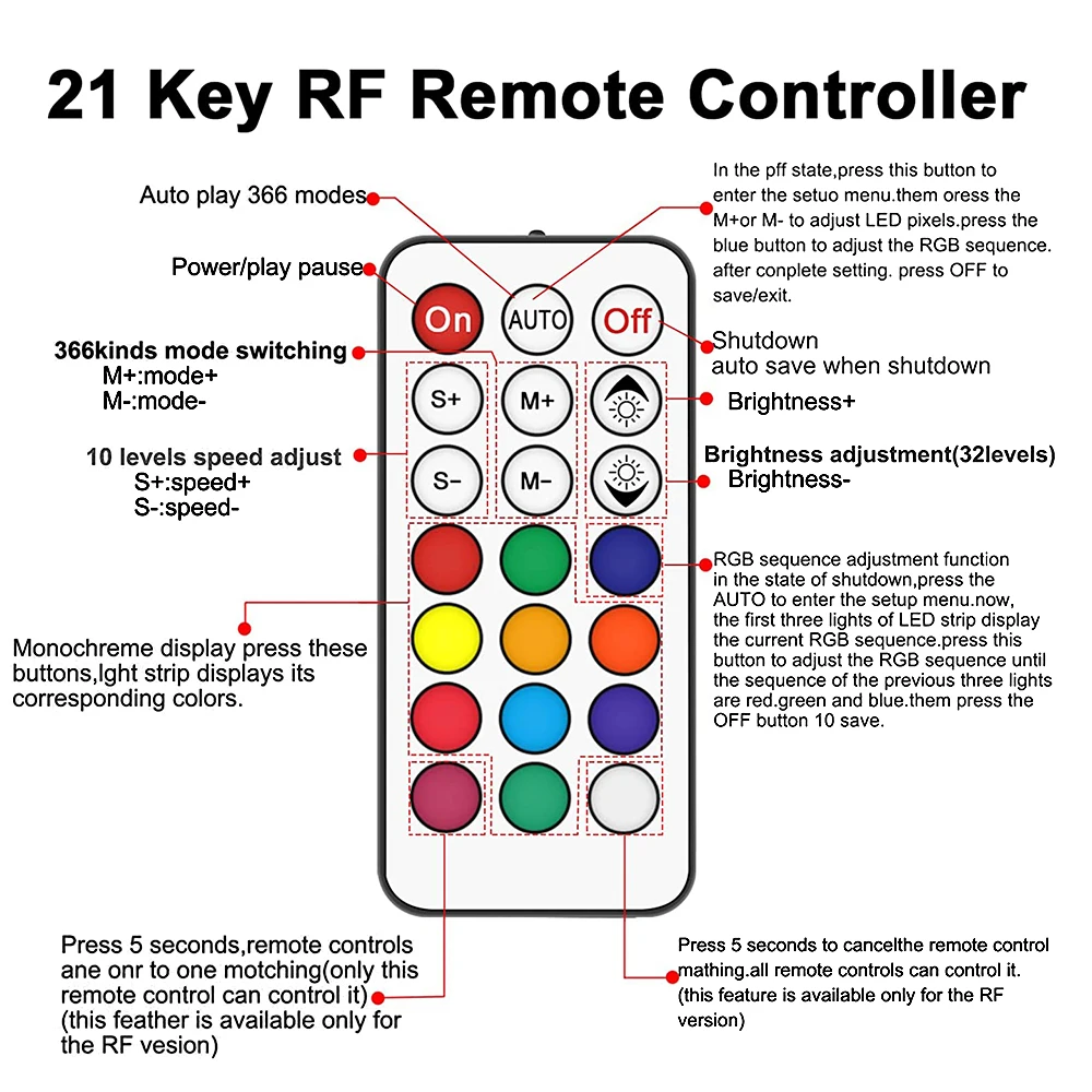 Mando a distancia RF de 1*21 teclas (no incluye batería)