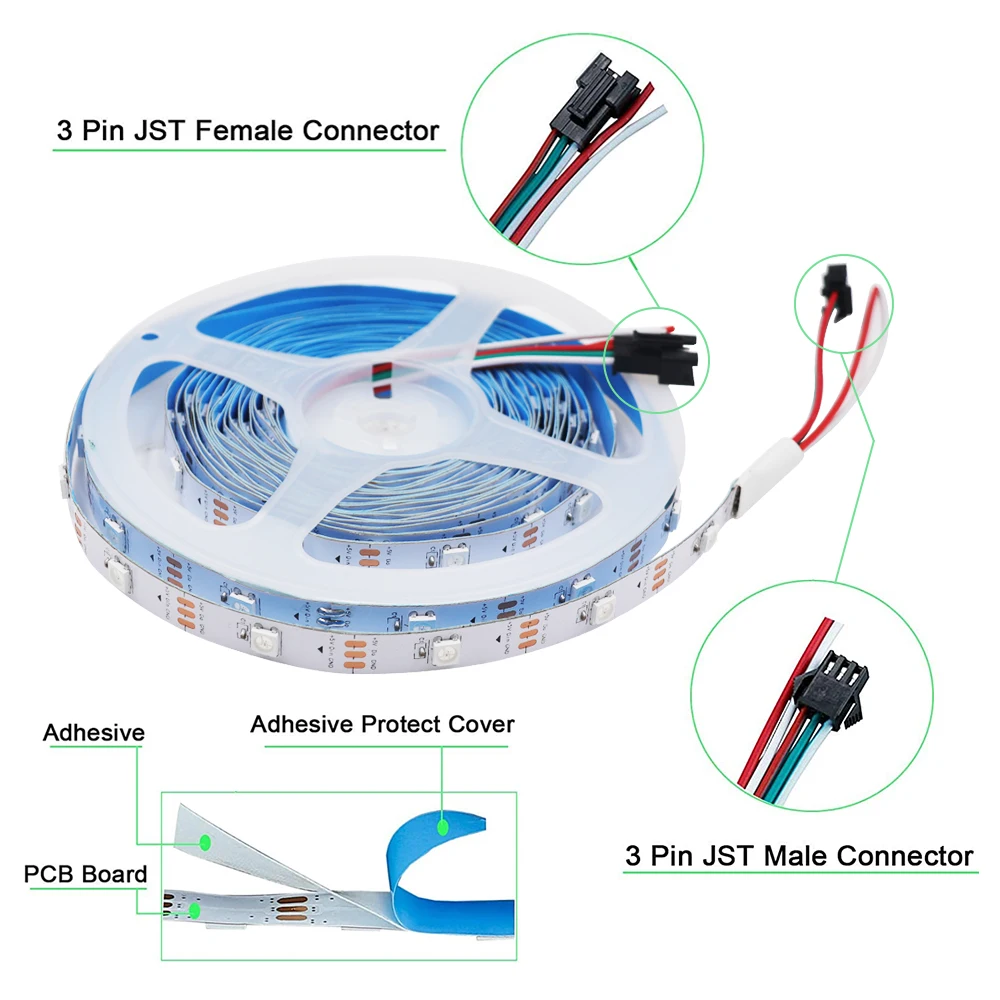 Nota: si solo elige la tira LED WS2812B solamente, el mando a distancia y el adaptador de corriente no están incluidos.