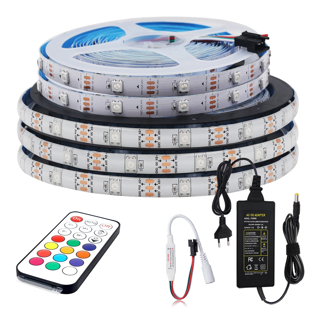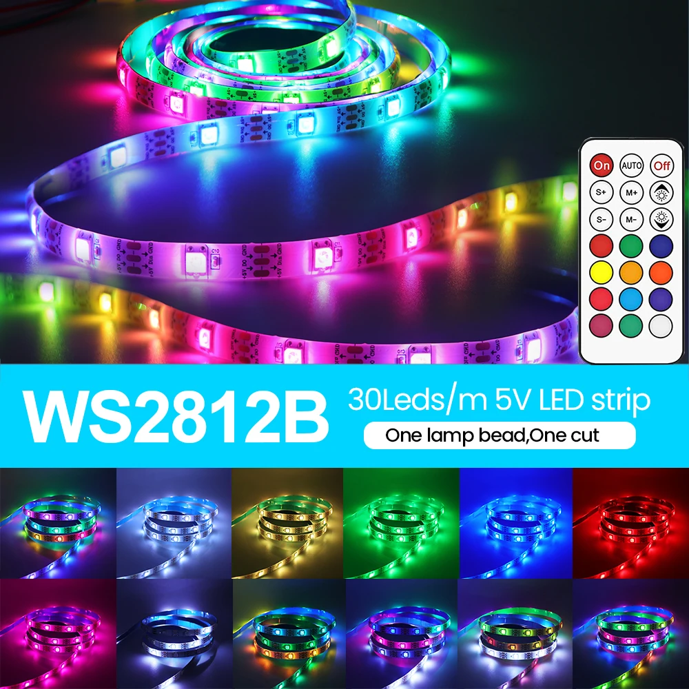Comprar Tira de luces LED RGB WS2812B, cinta de píxeles direccionable con control remoto para lámpara trasera de TV, DC5V, 1-5M, IP30/IP65 con Kit de alimentación