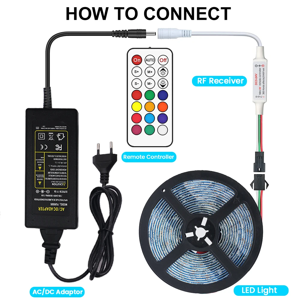 Nota: si solo elige la tira LED WS2812B solamente, el mando a distancia y el adaptador de corriente no están incluidos.