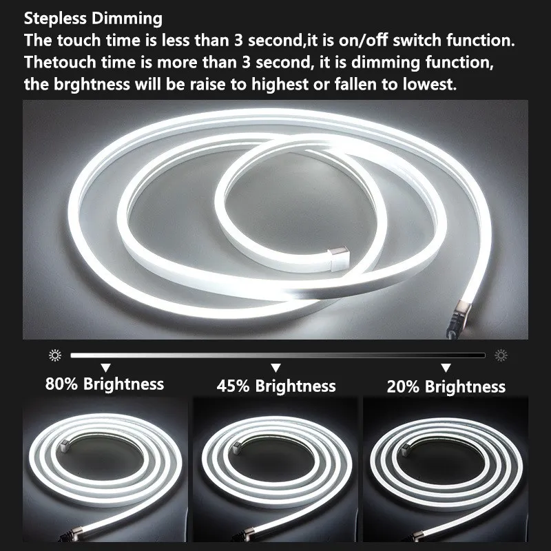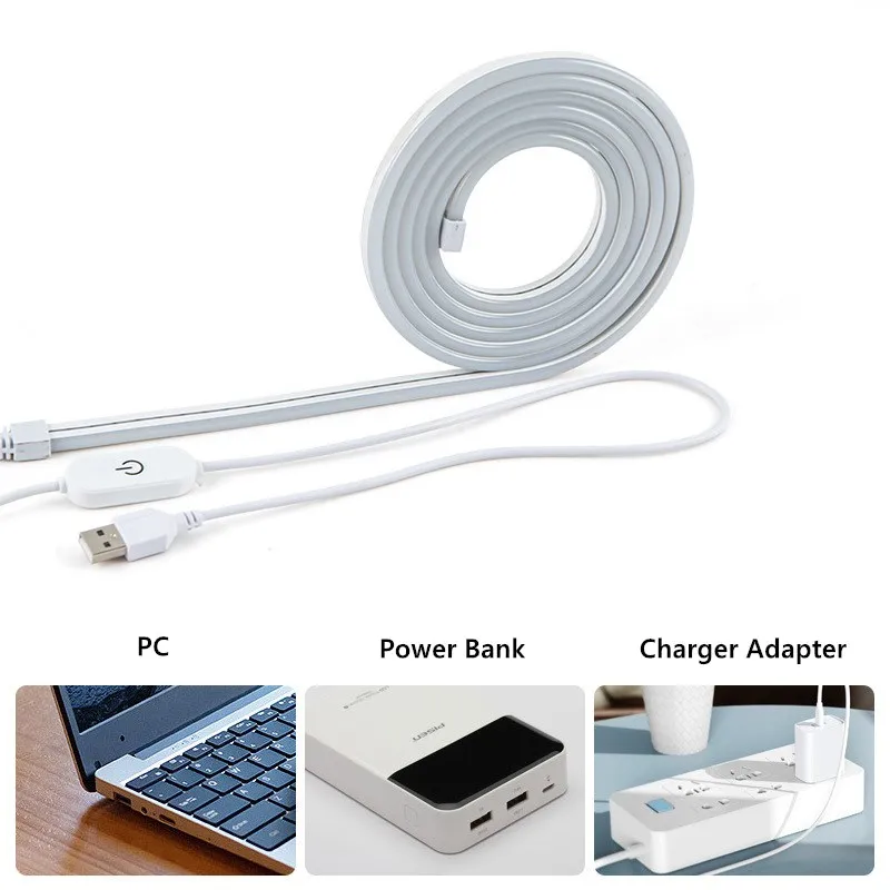 Sensor táctil 5V tira de luz LED neón regulable impermeable Flexible LED neón luz cinta cinturón 5V lámpara USB para la decoración del hogar de la habitación